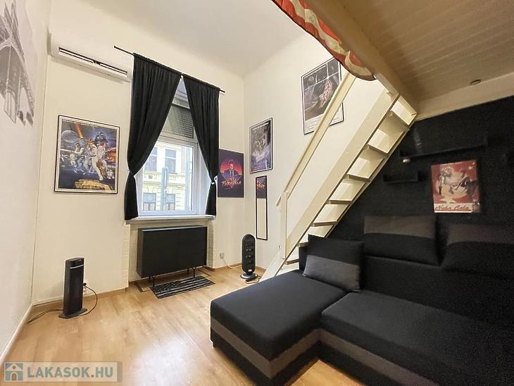 Eladásra kínálunk Budapest VII. kerületében, a Jósika utcában egy 23 m²-es, gondosan felújított, praktikus elosztású lakást. Az ingatlan egy szobából és külön konyhából áll, a szobában kialakított, 158 cm belmagasságú galéria kényelmes alvóteret vagy extra tárolási lehetőséget biztosít, így a lakás tere kiválóan kihasználható. A zuhanyzós fürdőszoba modern kialakítású, letisztult megjelenésű.