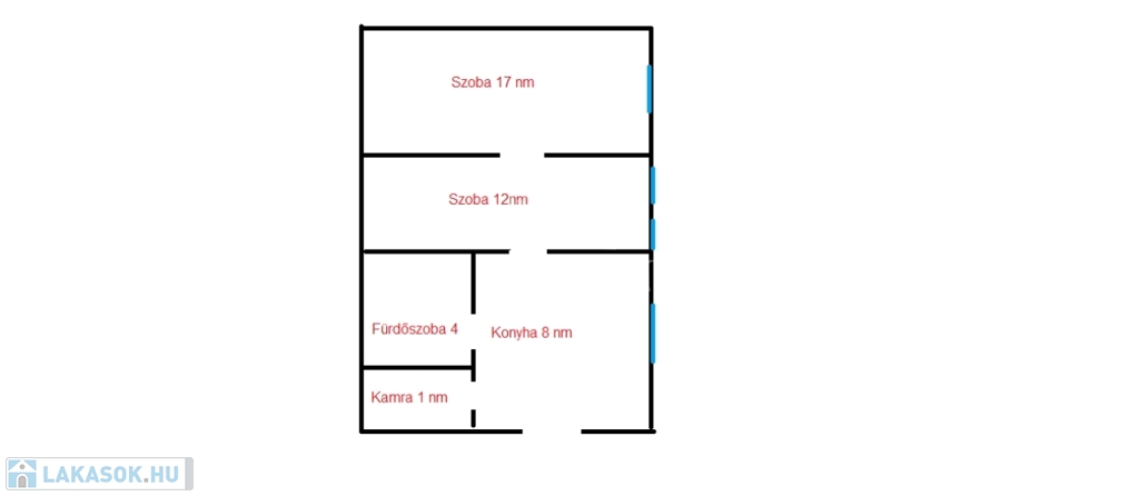 Az ingatlan keleti tájolású, ablakai udvarra néznek.