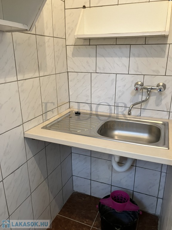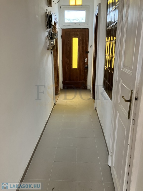 A nappaliban megőrzött halszálkás fa parketta igazi klasszikus érték, felújítva különleges hangulatot adhat. A többi helyiség hidegburkolatos, a szobában linóleum található.