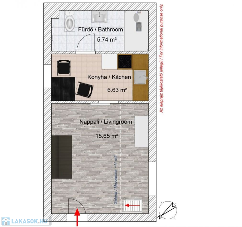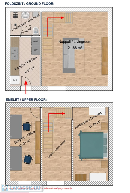 Hasznos alapterület: kb. 52 m² (földszint + teljes értékű galéria)
