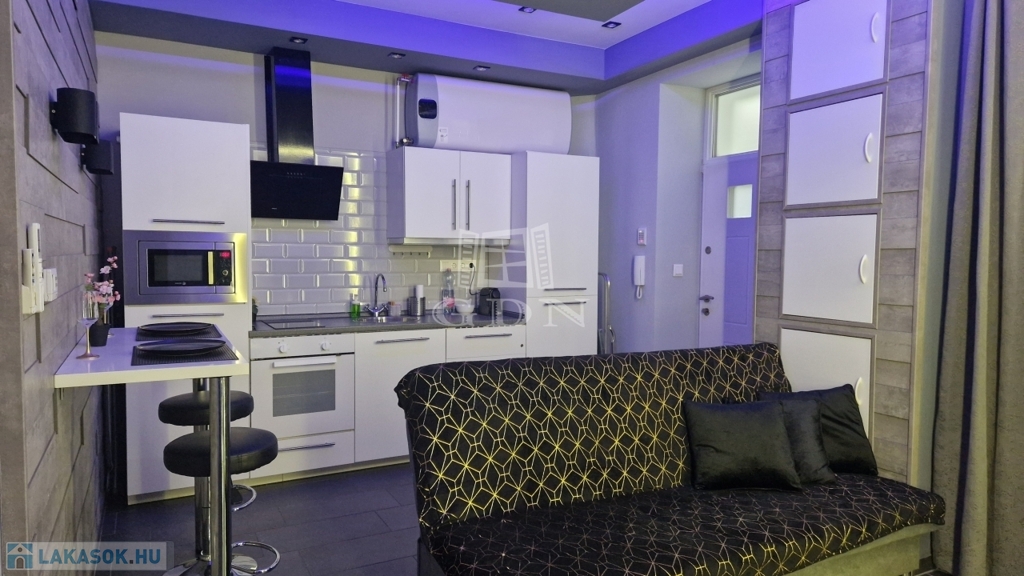 Az Erzsébet körúti appartman amerikai konyhás nappali+háló és modern zuhanyzós fürdőszoba elrendezésű, bútorozott-gépesített, azonnal költözhető.