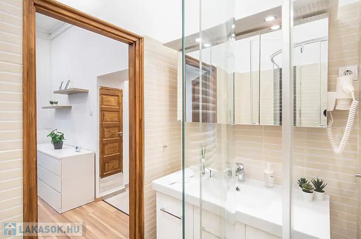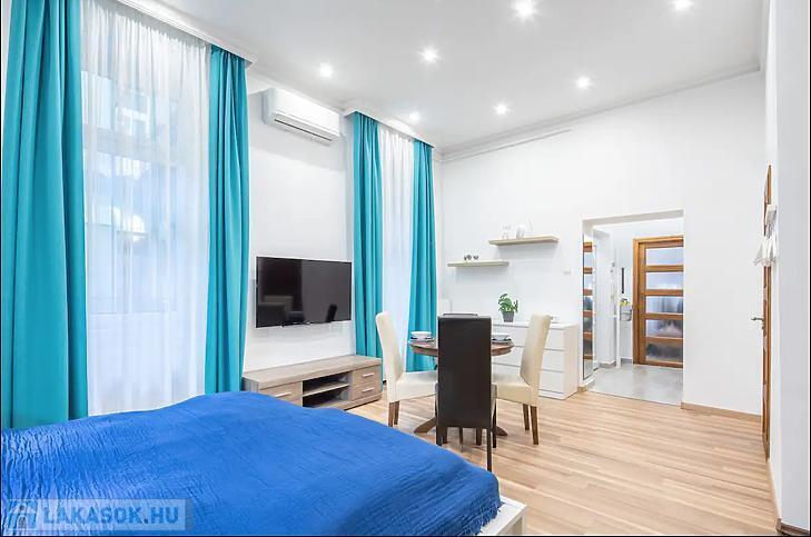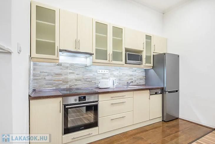 Az ingatlan amerikai konyhás nappaliból és külön nyíló hálószobából áll, ami ritka és rendkívül praktikus ebben a méretkategóriában. A lakás komfortját tovább növeli, hogy a fürdőszoba és a WC külön helyiségben található, valamint egy külön tároló is a lakáshoz tartozik. A lakás körülbelül 10 évvel ezelőtt teljes körű műszaki és esztétikai felújításon esett át, melynek során a gépészet, burkolatok és a belső terek is megújultak.