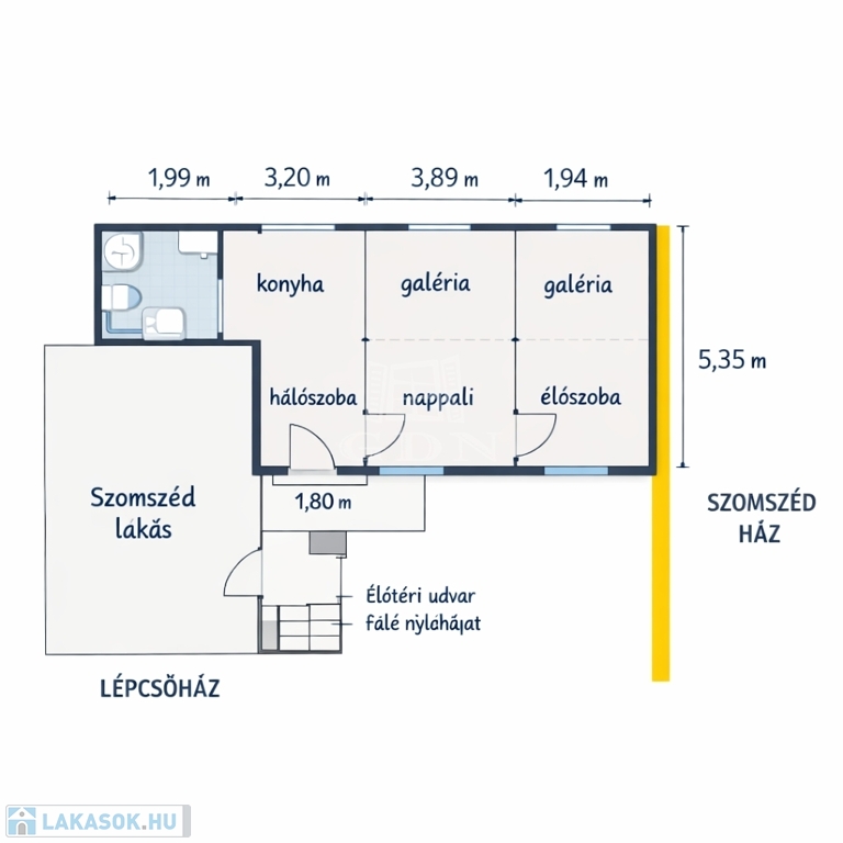 A bejárat előtti 3nm-es rész erkély ként funkcionálhat.