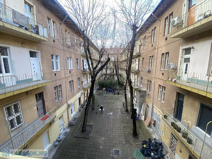 Eladó egy világos, udvarra néző, 59 m²-es lakás Budapest belvárosában, a Dob utcában.