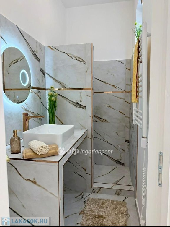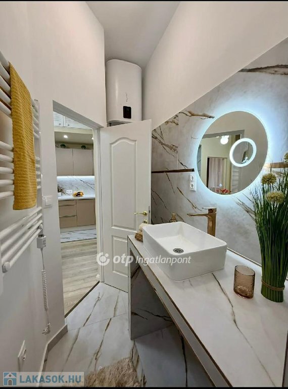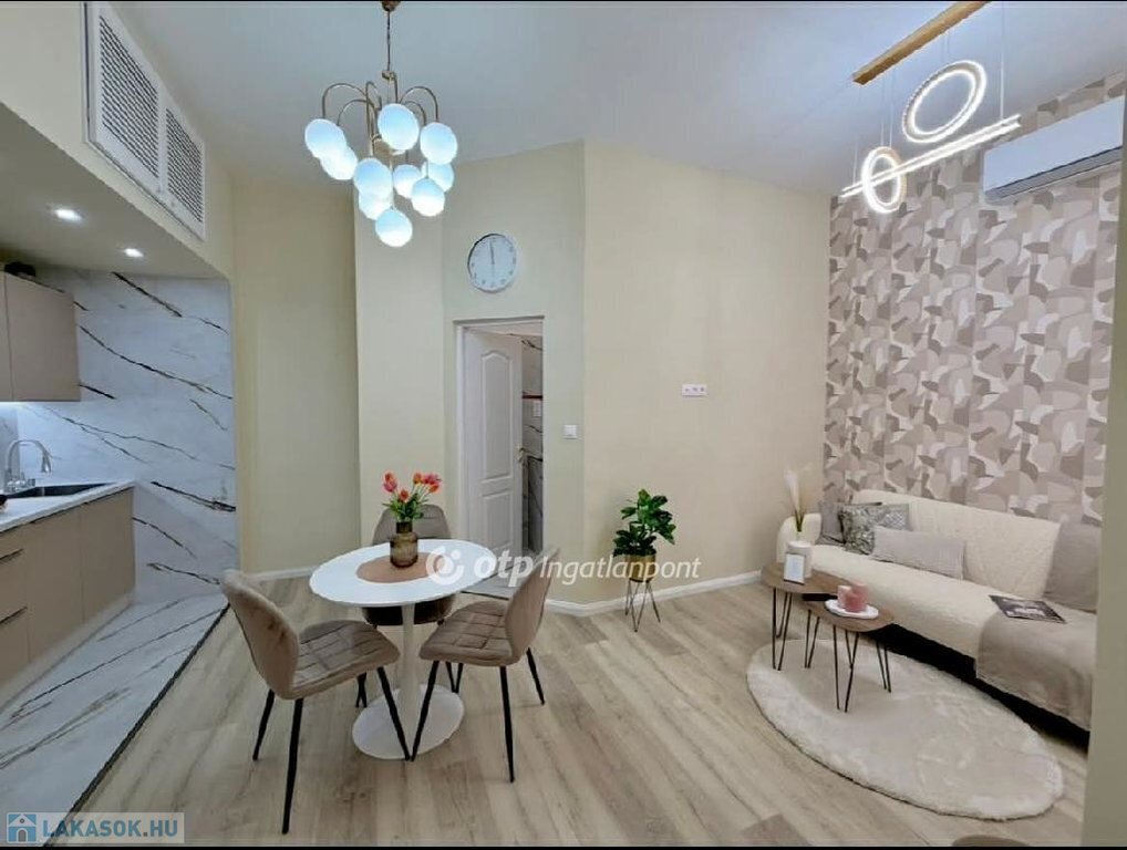 Az esztétikáról minőségi és stílusos anyagok gondoskodnak, a TELJES BERENDEZÉS a vételár részét képezi ( hűtő-fűtő klíma, mosogatógép, páraelszívó, bútorok és kiegészítők ), igazi beleszeretős kis lakás!