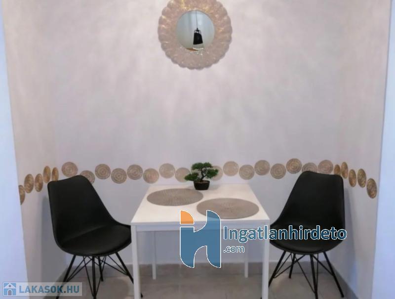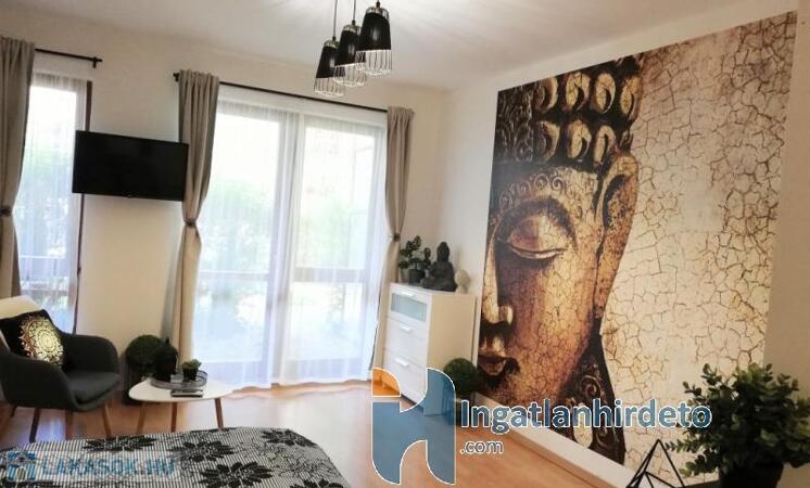 Az ingatlan lakóterülete 32 nm, mely tágas, zuhanykabinnal ellátott fürdőszobából, a szobától elszeparált de mégis nyitott konyhából, és parkosított udvarra néző szobából áll.