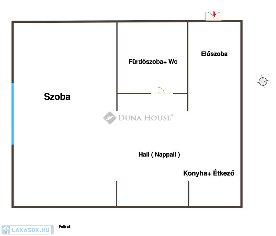 -1 szoba, hall, étkező