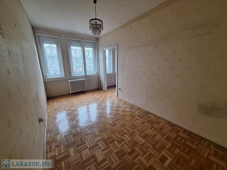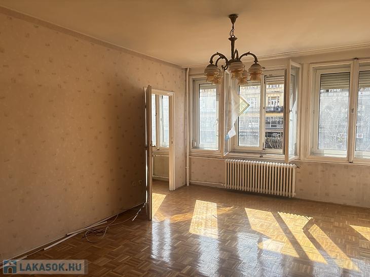 Eladó egy 58 négyzetméteres, háromszobás lakás Budapest 7. kerületében, a Károly körúton, liftes társasház első emeletén.