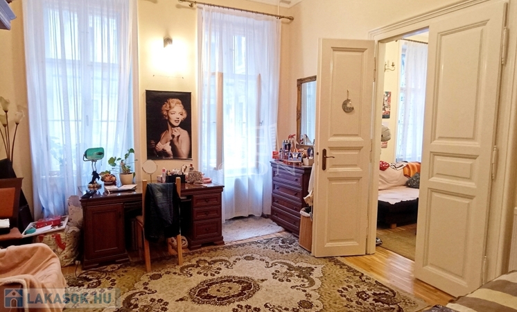 A helyiségek elosztása 2+1 szoba, ami ideális lehet akár családoknak, akár dolgozó fiataloknak. A körfolyosó utolsó lakása, melyet 2016-ban újítottak fel teljes körűen.
