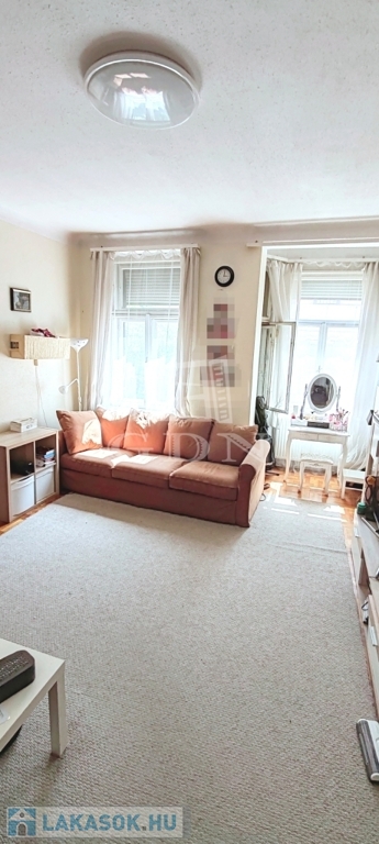 A nappali hatalmas, 2 erkélyes, 2 ablakos.