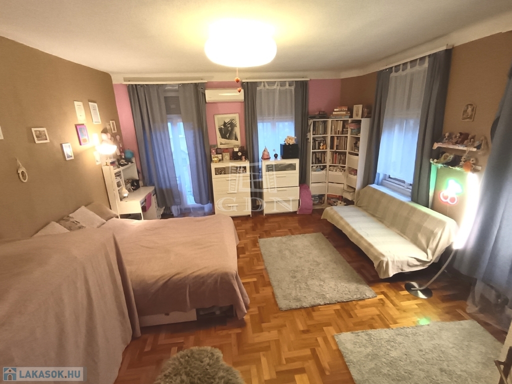 A nagyméretű udvari csendes szoba 2 szobává alakítható.