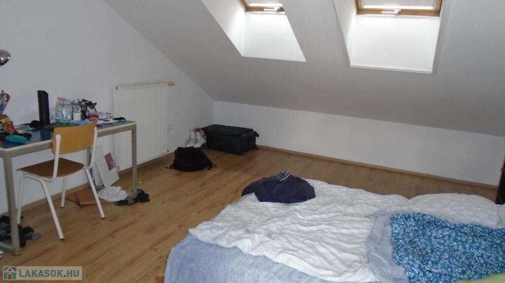 Budapest VII kerületében - ahol a Városliget zebrán történő gyalogos átkeléssel elérhető-, egyirányú utcában áll a liftes társasház, melynek IV. emeletén található ez a kétszintes, részben bútorozott 1 nappali 3 szobás lakás. Az alsó szinten van a konyha, a nappali és egy háló, fürdőszoba WC és kamra, a felső szinten 12 m2 szoba, fürdőszoba WC-vel, valamint a 7 m2 - a társasház belső része fölé kinyúló - terasz. Ez szokatlan és megfizethetetlen különlegesség teszi exluzívvá ezt a lakást, mely szeptember 1-től válik szabaddá, és eladhatóvá azonnali költözéssel. A lakás egésze tisztasági festéssel kerül átadásra. Ir.ár: 96 mFt