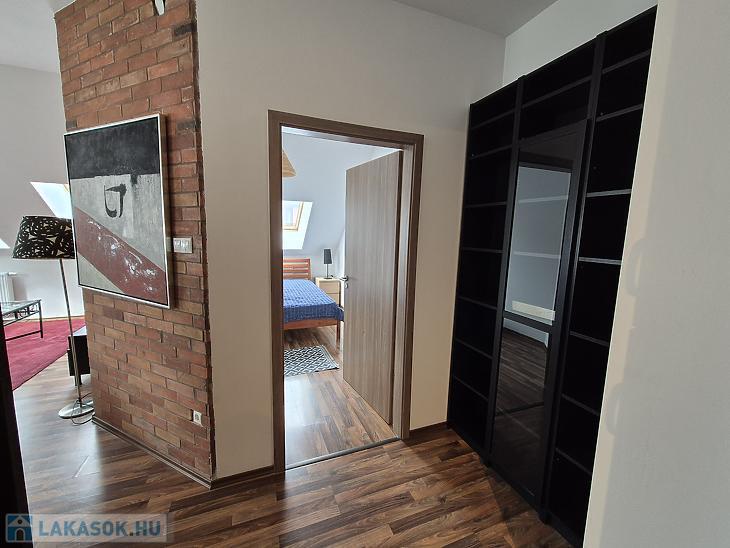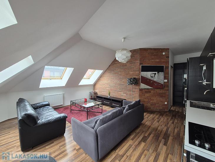 Az ingatlan 48 m2-es hasznos alapterülettel rendelkezik, míg a valóságos mérete összesen 64 m2. Az újépítésű lakás szintráépítéssel jött létre egy liftes társasház IV. emeletén.