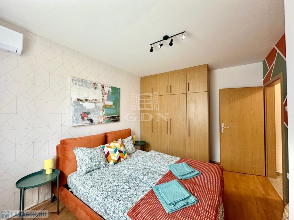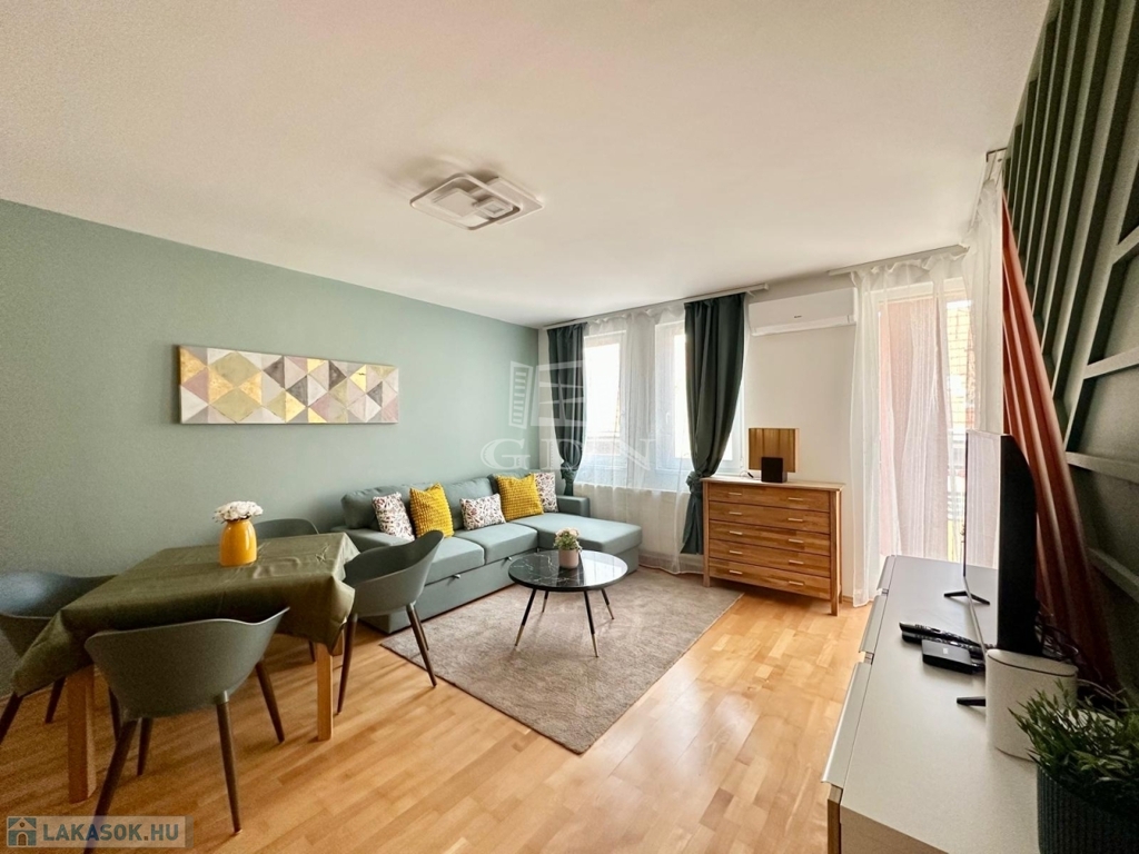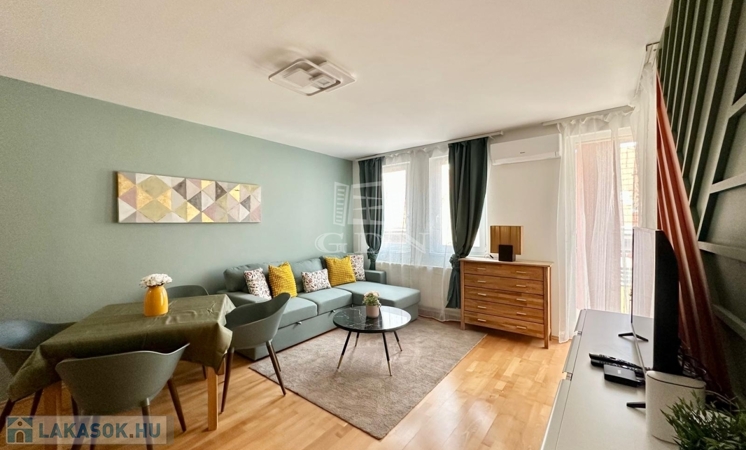 47 m² + 8,5 m² erkély, légkondicionált, udvari nézet, 2010-ben épült, liftes ház 7. emeletén.