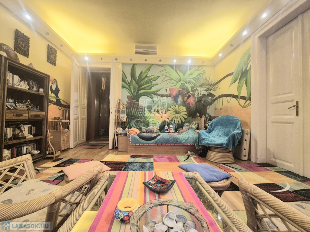 Belső - Erzsébetváros szolgáltatásokban bővelkedő egyirányú mellékutcájában, három emeletes, liftes társasházban kínálok eladásra, egy kitűnő állapotú, 93 m2-es, utcai nézetű, roppant világos, 2+1 fél külön és egymásból is nyíló szobás, felújított víz, villanyhálózattal rendelkező, riasztóval felszerelt, cirkó fűtéses, klimatizált téglalakást.