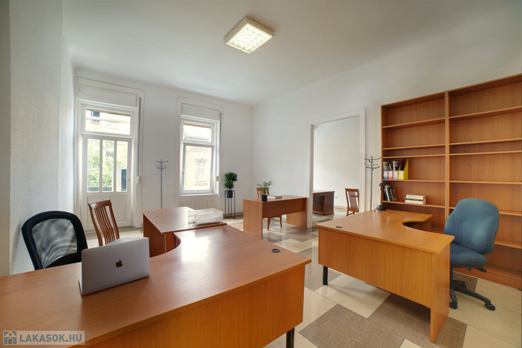 A Corvin pláza közvetlen szomszédságában, felújított, lifttel felszerelt épületben II. emeleti lakást kínálunk eladásra. A lakás 115 m2 alapterületű, 3 utcai szobával rendelkezik. A lakás fűtése energiatakarékos, hőszivattyúval működik, radiátorok, valamint padló és falfűtés segítségével. A lakást teljes egészében felújították, az udvari homlokzatot szigetelték. Irodai használatra is, valamint lakás célra is alkalmas. A teljes rezsiköltség a fűtés-hűtéssel együtt kb. 25.000.-Ft/hó. Közös költség: 20.700.-Ft/hó