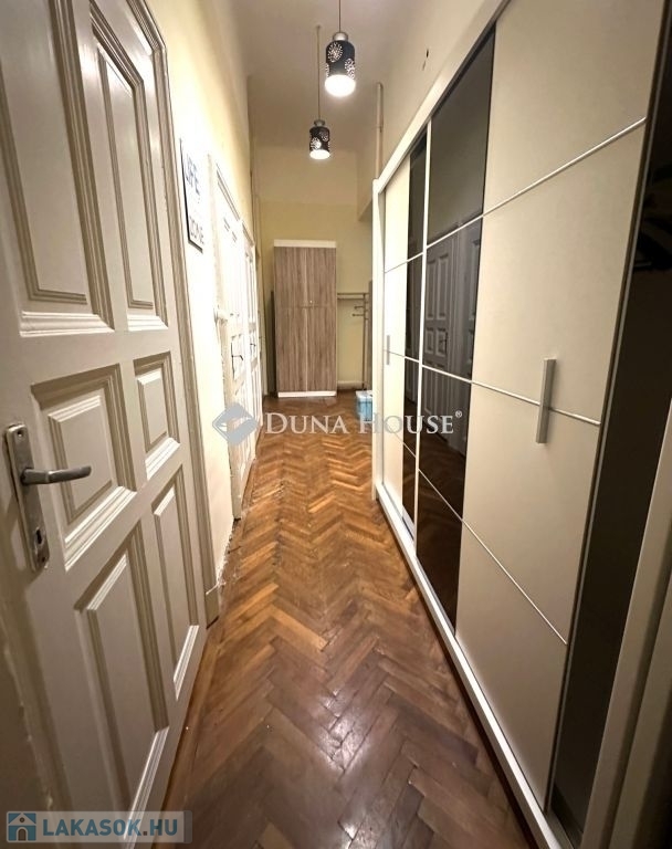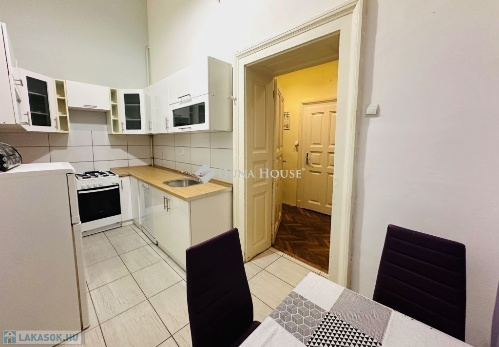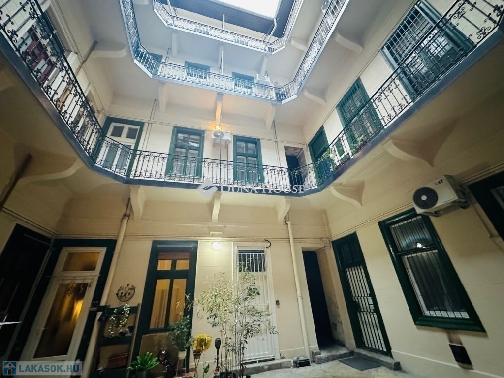 M4 metró közeli, lehetőségekben gazdag lakást kínálok megvételre a 8. kerület, II. János Pál pápa tér közeli, barátságos társasházban. A ház belső udvara mesébe illő belvárosi bérház hangulatot tükröz. A lakóközösség elérte, hogy a belső homlokzat átessen a felújításon, így igazán bájos környezetből nyílik ez a magasföldszinti ingatlan.Az ingatlan 76 m²-es , magasföldszinti, és akár két bejárat is kialakítható (jelenleg egy van, de a konyhánál adott még egy ajtó nyitása.Irodának, rendelőnek is tökéletes választás a lokáció és a társasházban való elhelyezkedése miatt.A lakás alatt egy szuterén helyiség van, melyet raktározásra használnak. Az ingatlan száraz!A lakás bútorozott és gépesített, költözhető állapotú ingatlan.Ablakai nagy része utcára néznek, műanyag nyílás zárók.3 külön nyíló szobás (2 egész és 1 fél) és egy külön nyíló étkezős konyha is rendelkezésünkre áll. Az két szoba is galériázott, melyek álló galériák.Jelenleg egy fürdőszoba van külön toalettel, de dupla komfort is megoldható, mert a wc mellett találunk egy tágas kamra helyiséget, mely beáldozható a 2. fürdőszoba kialakításához.Van egy hatalmas előszobánk, mely gardrób is jelenleg, de akár a konyhának is helyet tud biztosítani, amennyiben a konyhából szeretne kialakítani még egy hálószobát.A lakás belmagassága több, mint 4 méter, így aki duplex lakásban gondolkozik, itt valóra válthatja! Ez esetben a rengeteg szoba kialakítható az ingatlanban, akár 8 szoba is!Amennyiben maradunk az egy szintes verzióban, akkor a 4 külön nyíló szobát javasolnám kialakítani.Mindezt csak azért vázolom fel, mert az Egyetemek is közel vannak, pár villamos-, vagy metró megállónyira.Amennyiben saját célra vásárol, akkor egy 4-5 fős kisgyermekes család is kényelmesen el tud férni.A nyílászárók ki lettek cserélve kivéve egy-két kis ablakot, ami lichthofra néz. A bejárati ajtó is új típusú, hang és hőszigetelt.A lakás vizes blokkjai rendben vannak, pár éve lettek felújítva.A villanyhálózat felújított. 25 Amperes.Burkolatok, falak rendezettek. Ami az eredetihez nagyon hasonló állapotot tükröz, az a parketta. Ezt már az új tulajdonosra bízzuk, mit kezd vele.A konyha jól bútorozott, gépesített.A belső nyílászárók eredetiek, nagypolgári hangulatban úsztatják ezt a tágas, jó elosztású otthont.A fűtés jelenleg konvektorral megoldott és a meleg vizet átfolyós vízmelegítő biztosítja.Amennyiben nem gáz párti, akkor ezek kiválthatóak hűtő-fűtő klímával és egy jó ECO villanybojlerrel. A villanyhálózat 25 Amperes.A tömegközlekedés nagyon jó, a M4 2 percre található. A Rákóczi út 3 perc séta, a József és Erzsébet körút 10 perc séta és a Keleti Pályaudvar is.Az utca nem nagy forgalmú, csendesebb része a lokációnak és még parkolóhely is akad a ház előtt. Éjszaka csak a ott lakók parkolhatnak az utcában.Jó választás egyet befektetőknek, akik hasznot akarnak maximalizálni két lakással vagy egy 8 szobás duplex lakással.Jó választás nagyobb családnak, ahol szükség van 3-4 külön nyíló szobára.Jó választás egyetemistáknak az egyetemekhez közeli lakhatásra.