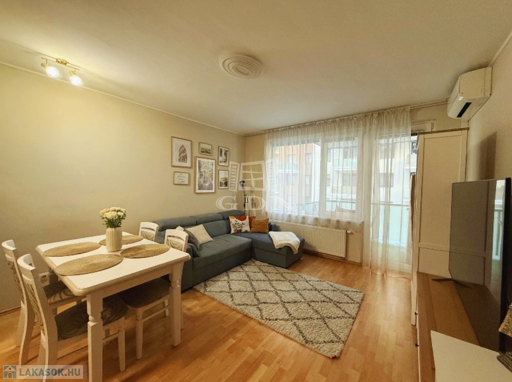 A lakás rendkívül világos, kiváló elrendezésű. A fürdő és wc külön helyiségben található. A lakás 5 m2 erkéllyel rendelkezik.