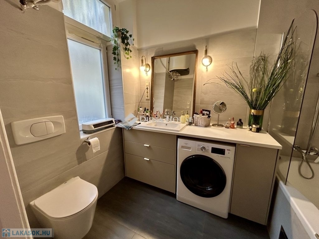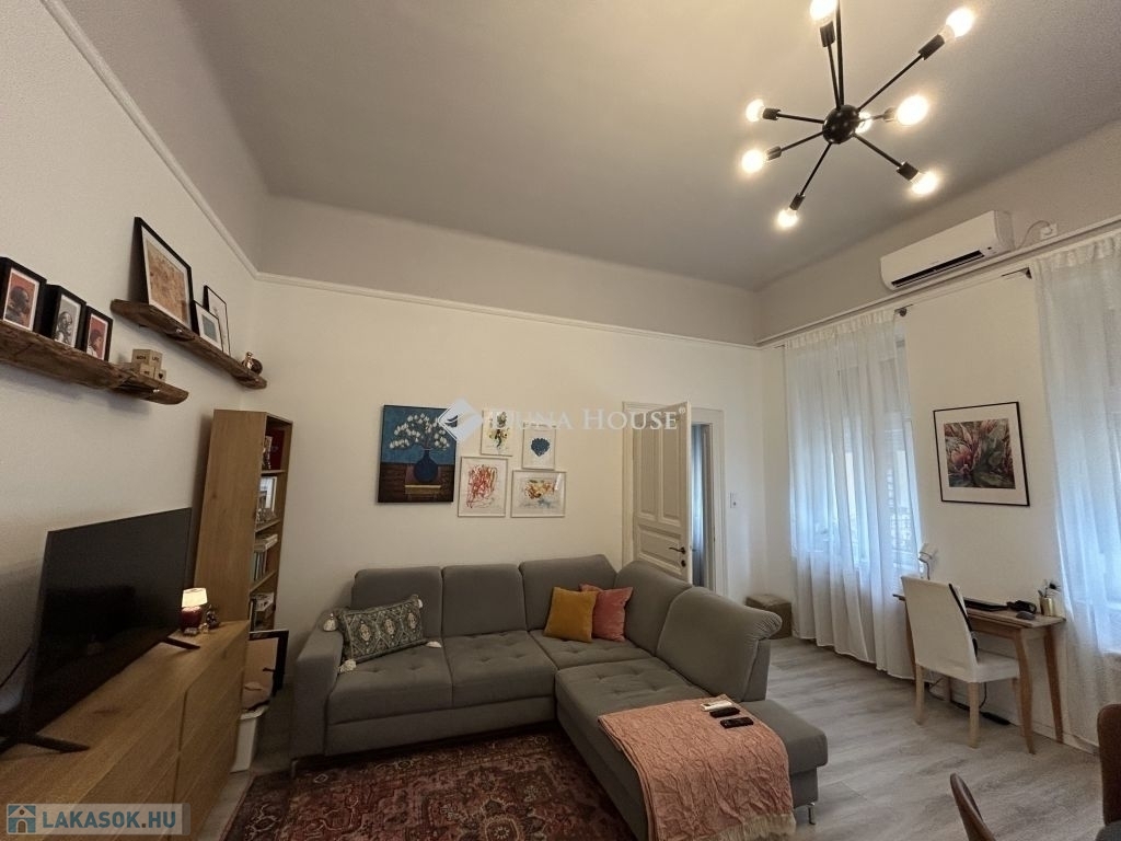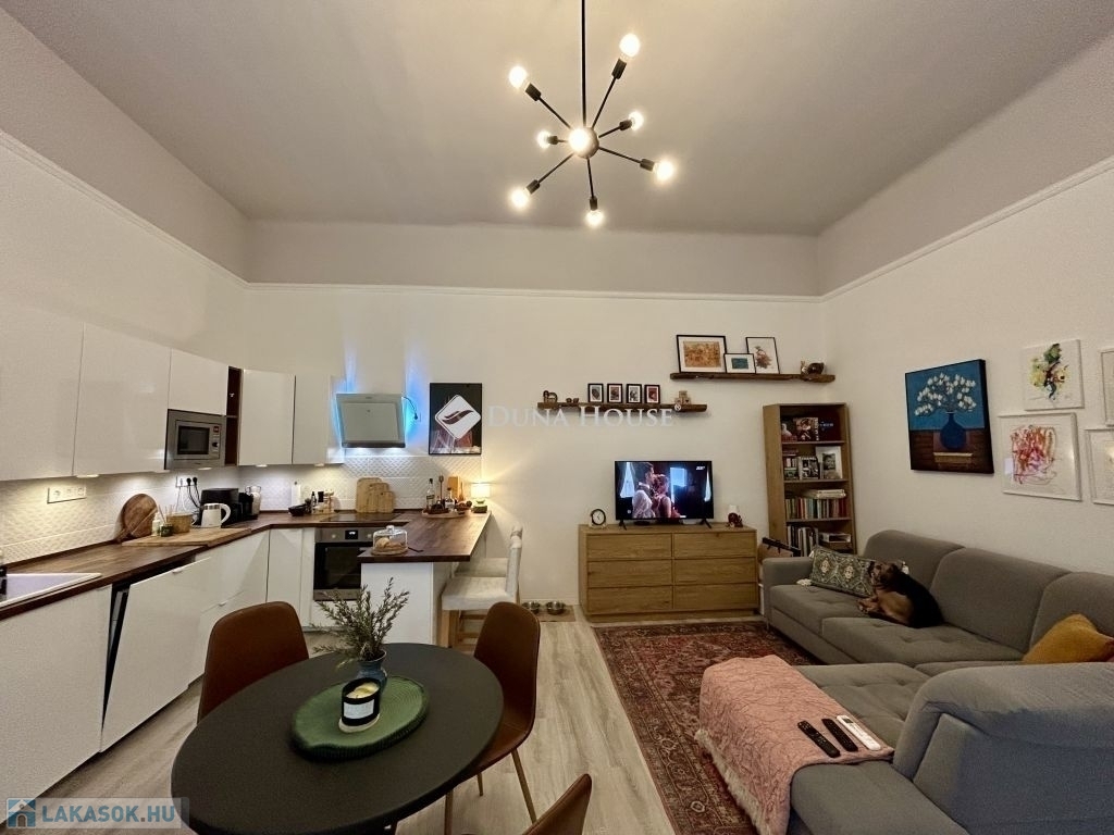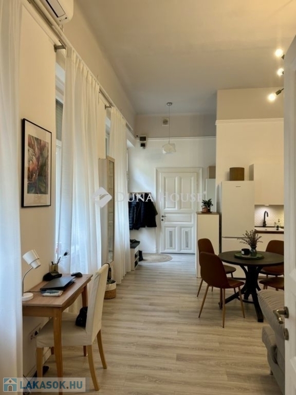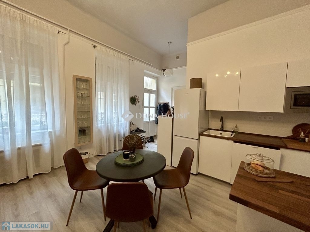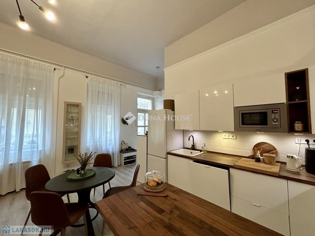 58 m²-es lakás a Palotanegyedben 2. emelet, amerikai konyhás nappali + 2 félszoba!Eladásra kínálok egy 58 m²-es, plusz 3,4 m² és 4,5 m² galériákkal kialakított, különleges hangulatú, tavaly teljeskörűen felújított lakást a Palotanegyedben, egy 3 emeletes, rendezett társasház 2. emeletén (lift nélkül). A lakás dél-keleti tájolású, csendes belső udvarra néz, és a körfolyosón nincs átjárás a lakás előtt, így teljes nyugalmat biztosít.A felújítás során minden víz- és elektromos vezeték cserélve lett, új, modern konyhabútor került beépítésre, az enteriőrt lakberendező alakította ki. A terek kiválóan kihasználtak, a két galéria maximális helykínálatot biztosít.Felszereltség:- 3 db hűtő-fűtő klíma a helyiségekben- amerikai konyhás nappaliban gázkonvektor- hőszivattyús villanybojler- fürdőben elektromos fregoli- gardrób, spotlámpás világításA bútorok külön megállapodás szerint elérhetők.Kiemelkedő elhelyezkedés - a lakás a Kálvin tér és a Corvin-negyed között található, pár perc sétára mindkettőtől. A környék infrastrukturálisan kiemelkedő: metró, villamos, buszok, kávézók, éttermek, egyetemek és kulturális helyszínek könnyen elérhetők.Jöjjön el, és nézze meg ezt az egyedi hangulatú, igényesen felújított otthont!