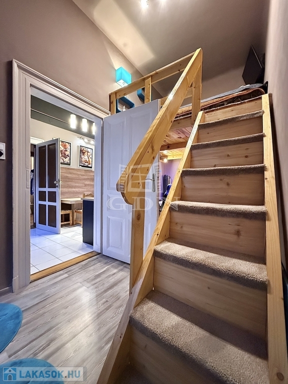 A lakás 2+1 szobás, külön konyhával, valamint nagy belmagassággal rendelkezik. Az otthon különlegessége a dupla galéria, amely kiválóan növeli a hasznos alapterületet, így ideális lehet akár dolgozósarok, hálórész vagy tároló kialakítására. A műanyag nyílászárók korszerűek, a fűtést gázkonvektorok biztosítják.