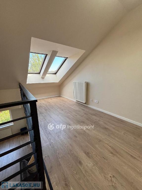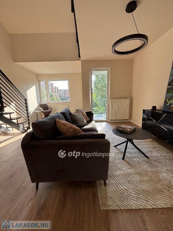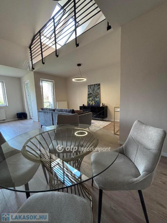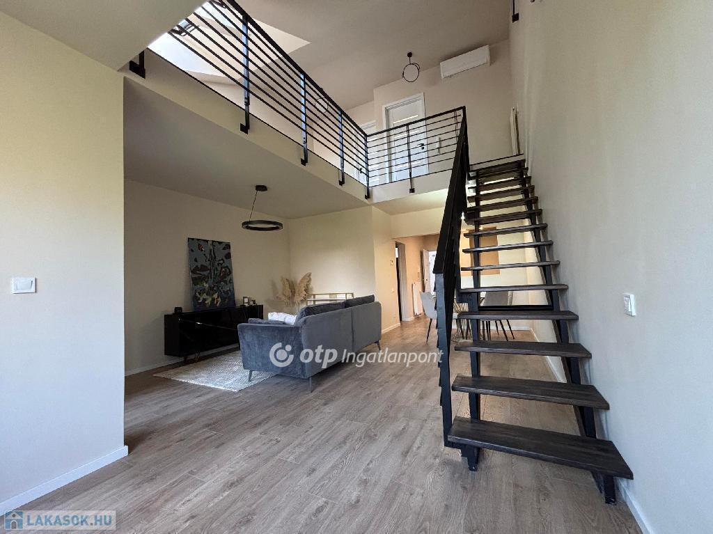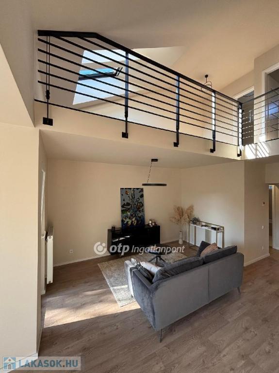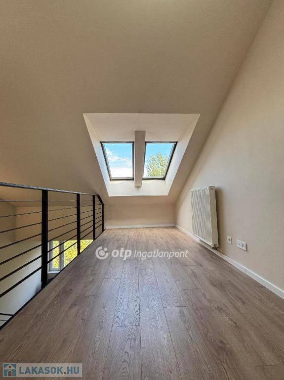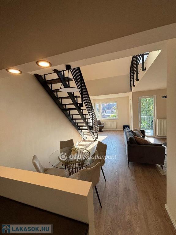 A lakás gyakorlatilag egyben van. Hatalmas belmagasság, hatalmas tér. Terasza és amerikai konyhás nappalijának ablaka az udvari fák koronáira néznek. Nincs szükség függönyökre, nem lehet belátni. Keleti fekvése miatt az egész lakás kora délutánig úszik a napfényben, délután a nyugati oldal ablakai miatt világos. A képek kíválóan visszaadják a lakás fiatalos elosztását. A földszinten amerikai konyhás nappali, gardrób, kádas fürdőszoba WC-vel, 4 négyzetméteres terasz van. Az emeleten hálószoba, tusolós fürdőszoba WC-vel, illetve egy nappalinak avagy hálónak használható tér, egy légtérben a földszinttel. A képeken látható bútorok alku tárgyát képezhetik.