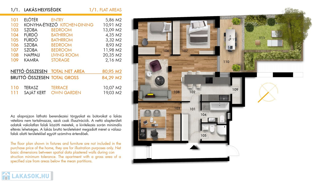 Két fürdőszoba: 4.35 m², 3.32 m²