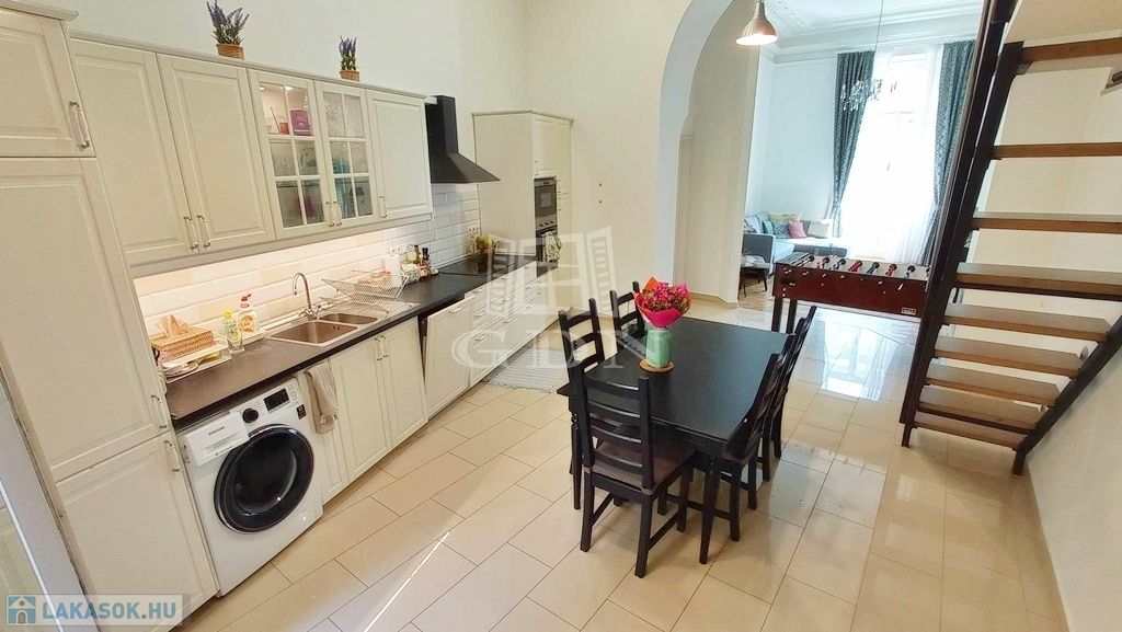 Corvin-negyed mellett kínálok eladásra egy gyönyörűen FELÚJÍTOTT igényesen berendezett, 1. emeleti, NAPFÉNYES, 118 nm-es,
