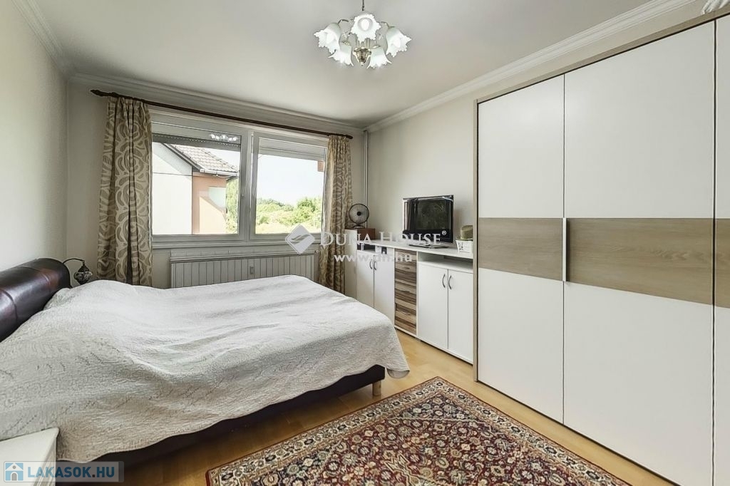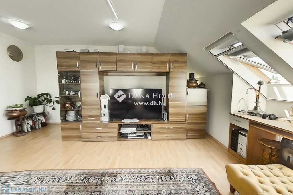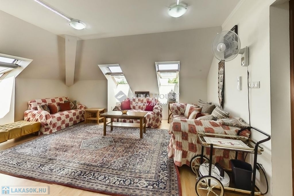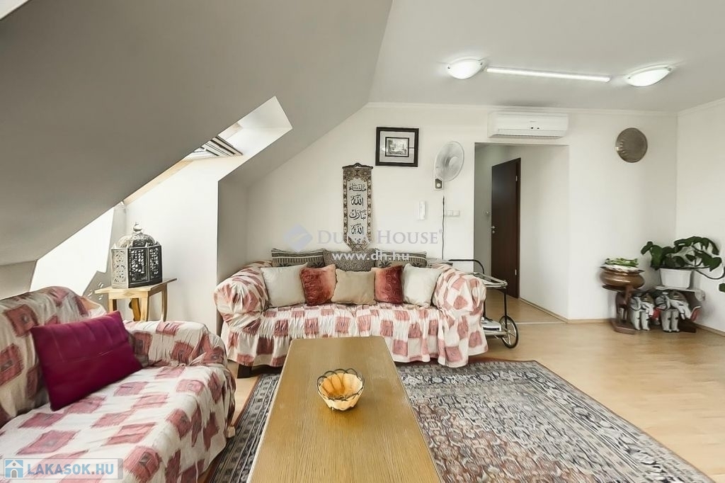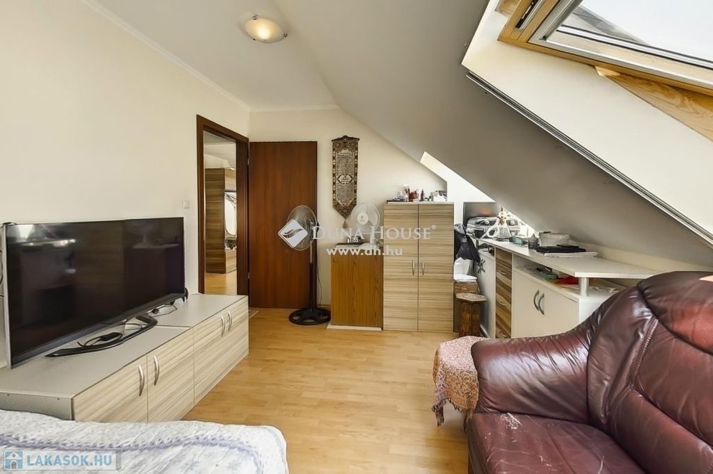 A felső szintén egy nagy világos nappali szobába érkezünk ahonnan egy folyosón keresztül jutunk el a 3 halószobába és itt van a fürdő és a wc is.A fűtés és meleg víz házközponti egyedi mérőkkel. A felső szinten klíma biztosítja nyáron is a kellemes klímát. A lakáshoz tartozik 2 autóbeálló is.