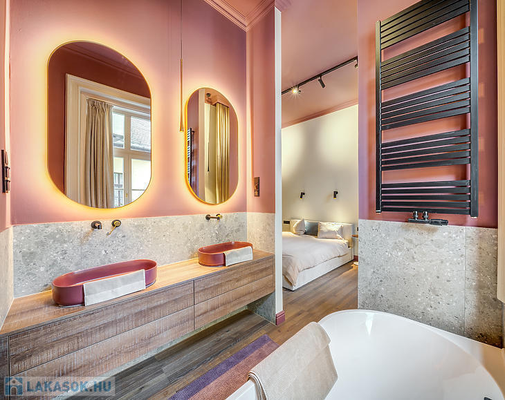 A lakás burkolatai prémium minőséget képviselnek: A vizes helyiségekben olasz Ariostea hidegburkolat található, amely nagy ellenálló képességű, elegáns felületeivel a kortárs design egyik vezető választása – luxushotelek és exkluzív középületek kedvelt anyaga világszerte.