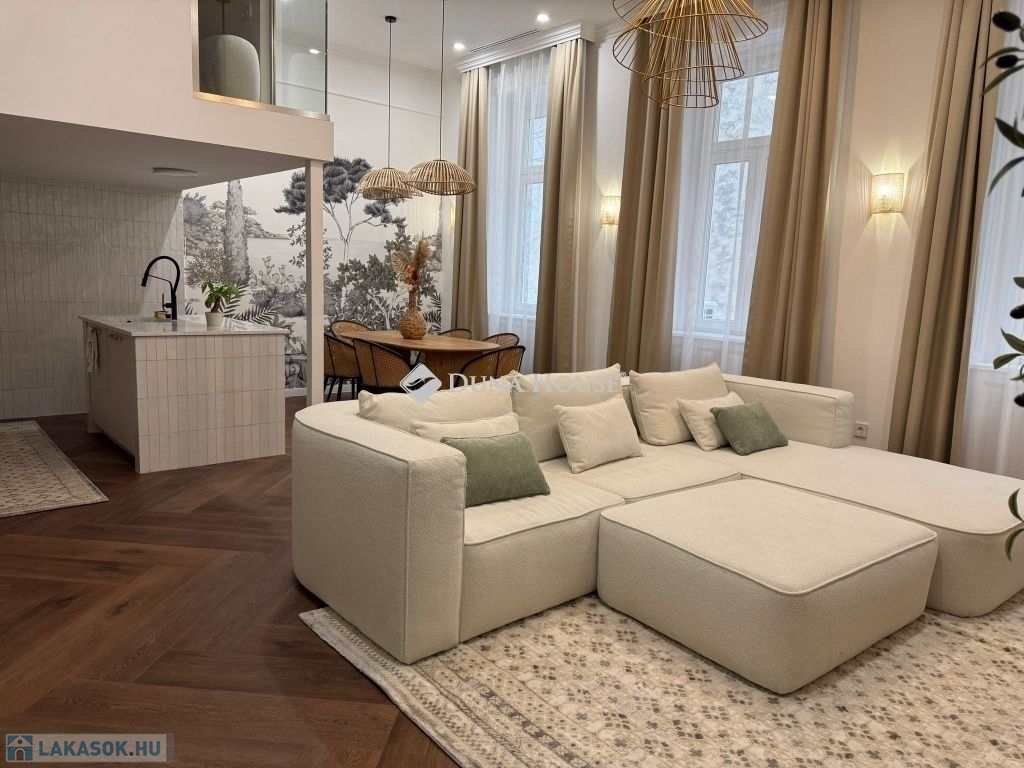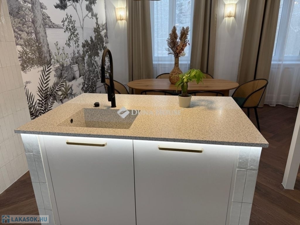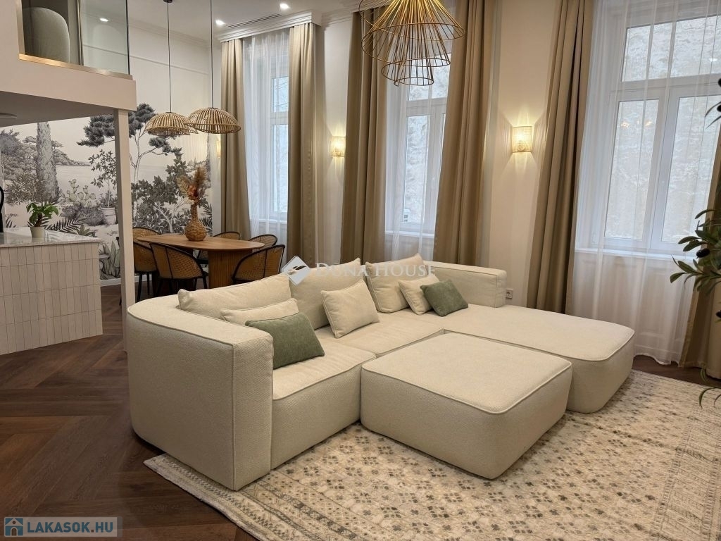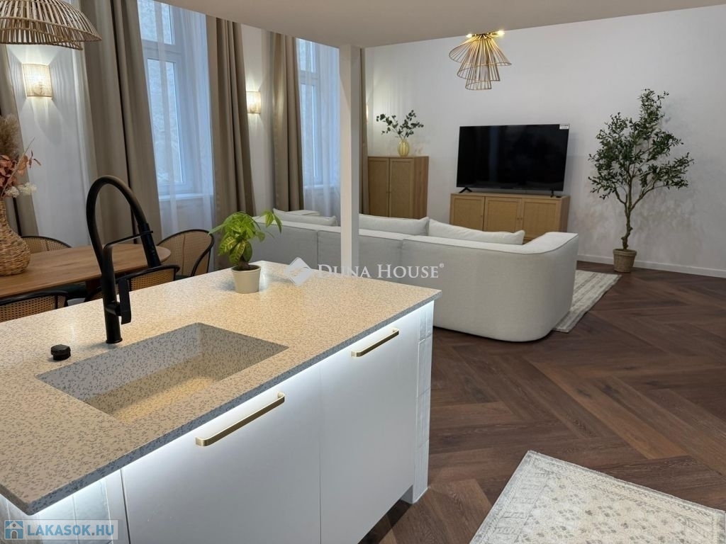 a Bródy Sándor utcában kínálunk eladásra egy 70 m²-es + 9 m² galériás, teljesen újragondolt, prémium műszaki tartalommal rendelkező belvárosi lakást, 6 m² saját pincével.Ez nem egy felújított ingatlan ez egy mérnökileg és esztétikailag végigtervezett otthon.Az ingatlan teljes körűen, alapig visszabontva újult meg:új réz elektromos hálózat, új gépészet, minőségi burkolatok, egyedi asztalosmunkák. Az eredeti, több mint 100 éves beltéri ajtók felújítva megmaradtak karaktert adva a modern térnek.A fűtéshűtés egy 7,5 kW-os, légcsatornázható LG rendszerrel megoldott, frisslevegős kivitelben, mennyezeti befúvókkal így az ingatlan egész évben komfortos, ablaknyitás nélkül is.A fürdőszobában elektromos padlófűtés és 120 literes, wifis Ariston bojler biztosítja a kényelmet.A nappalihoz kapcsolódó, teljesen zárt, üvegfallal leválasztott 9 m²-es galéria valódi hálószobaként funkcionál.A konyha egyedileg gyártott, BOSCH gépekkel, hőálló Staron munkapulttal és konyhaszigettel felszerelt.Az épület kívül-belül rendezett, felújított homlokzattal, 2 lifttel, kamerarendszerrel és jó lakóközösséggel.Ez az ingatlan nem tömegigényre készült.Azoknak szól, akik értik a minőséget, a technikát és az egyediséget és nem a kompromisszumot keresik.Az ingatlan vételára tartalmazza teljes butorzatot és a gépeket is. Hívjon akár hétvégén is!