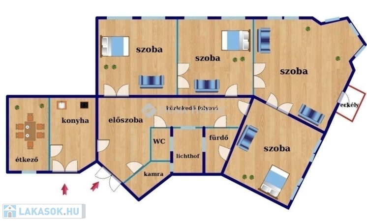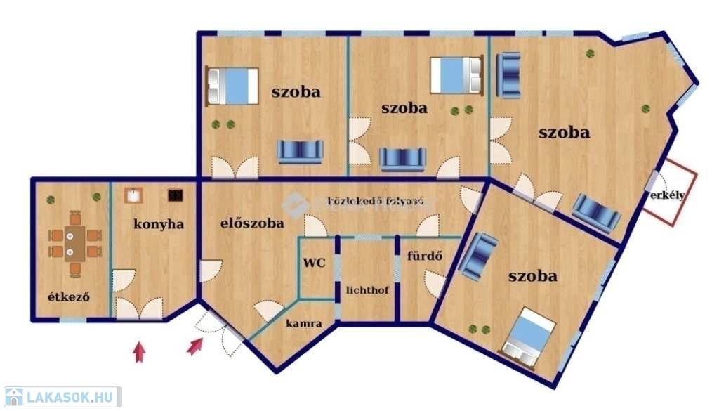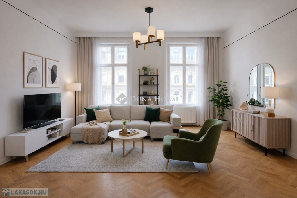 Budapest belvárosában nagypolgári lakás! Figyelem! Az első kép látványterv / reklámkép nem a jelenlegi állapotot tükrözi.A hirdetésben szereplő üres fotók az AI segítségével lettek kipakolva, nem a valóságot tükrözik. Minden szobában bútorok vannak!Eladó a VIII. kerületben, a Népszínház utca utcában, mindössze 200 méterre a II. János Pál pápa tér-től, egy 177 nm-es, 2. emeleti, nagypolgári SAROKLAKÁS.Az 1890-es években épült patinás épület amely korábban a Magyar Nemzeti Múzeum tulajdonában állt máig őrzi a klasszikus nagypolgári stílusjegyeket: nagy belmagasság, tágas terek, elegáns arányok.Lakás jellemzői:- 177 nm alapterület- 4 impozáns méretű, napfényes szoba (36 nm, 32 nm, 30 nm, 29 nm)- Utcai nézetű, dupla ablakos helyiségek- Külön konyha + étkező udvari kilátással- Erkély az egyik szobából- Minden szobában működő cserépkályha- Körbejárható alaprajz- 2 külön bejárat a körfolyosórólA belső falak szabadon alakíthatók, így a lakás kiválóan alkalmas:- többgenerációs otthonnak- irodának / rendelőnek / táncstúdiónak / showroom-nak- akár 4-5 külön lakás kialakításáraA házban engedélyezett a rövid távú (Airbnb) működtetés, a hosszú távú bérbeadás is kiemelkedő befektetési lehetőséget jelent.Elhelyezkedés és infrastruktúraA környék folyamatosan fejlődik és megújul, így az értéknövekedés szinte garantált. A közlekedés kiváló, a belváros percek alatt elérhető, de a közelben megtalálható minden, ami a mindennapokhoz szükséges.