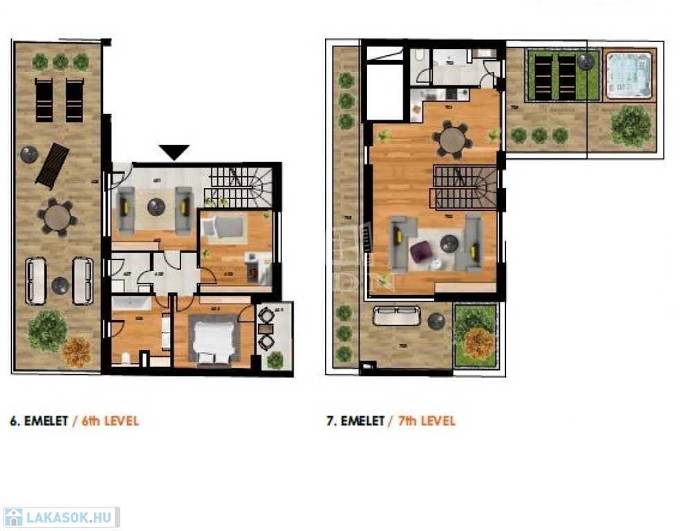 - Teraszok összesen: 146,37 m² (!) – három égtáj felé nyitott, egész nap használható, napfényes és árnyékos részekkel