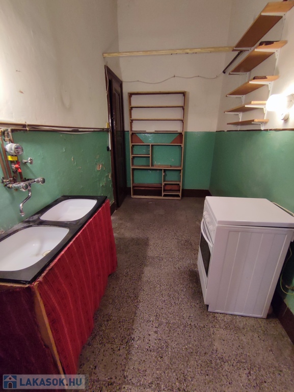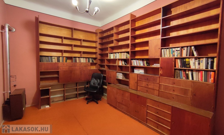 A lakás teljes körű felújítást igényel, így az új tulajdonos saját ízlése szerint alakíthatja ki. Jelenleg gázkonvektoros fűtés, fa parketta és villanybojler található benne. A nagy belmagasságot egy beépített könyvespolc-rendszer hangsúlyozza ki.
