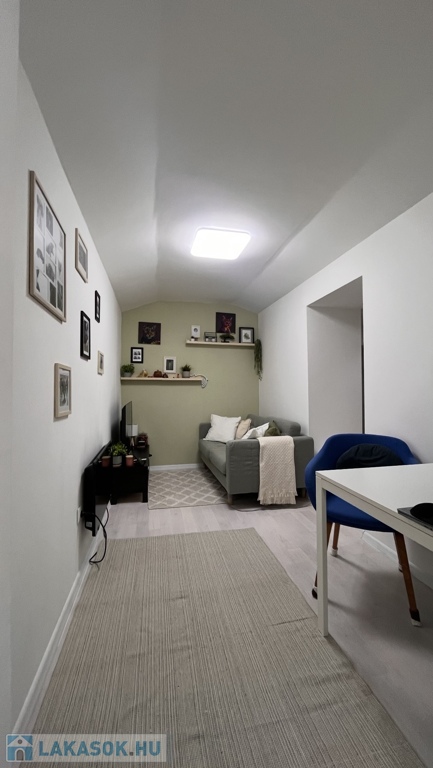 A helyiségek a következők: praktikus kis konyha, zuhanyzós fürdőszoba WC-vel, nappali, ahonnan egy közlekedőn keresztül elérhető egy intim hálófülke és egy gardrób is, így az ingatlan minden négyzetmétere praktikusan kihasználható.
