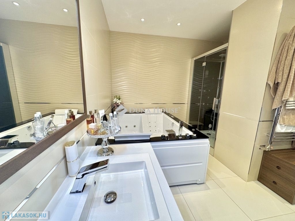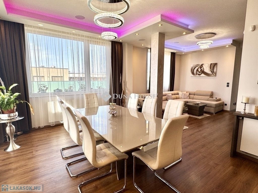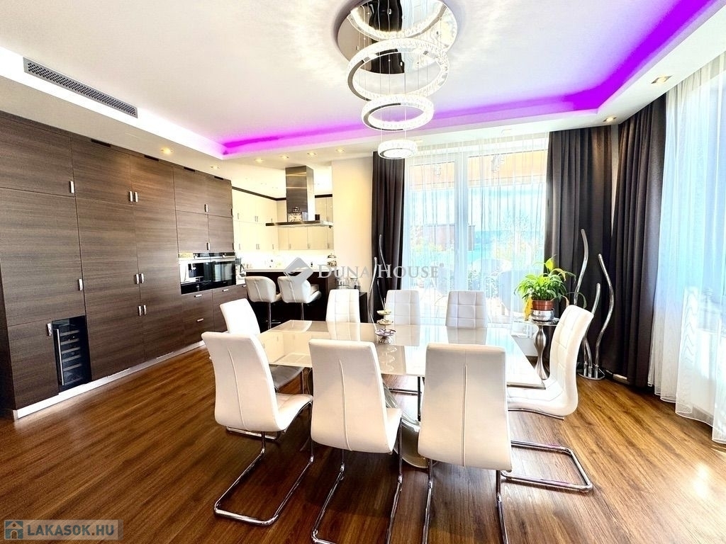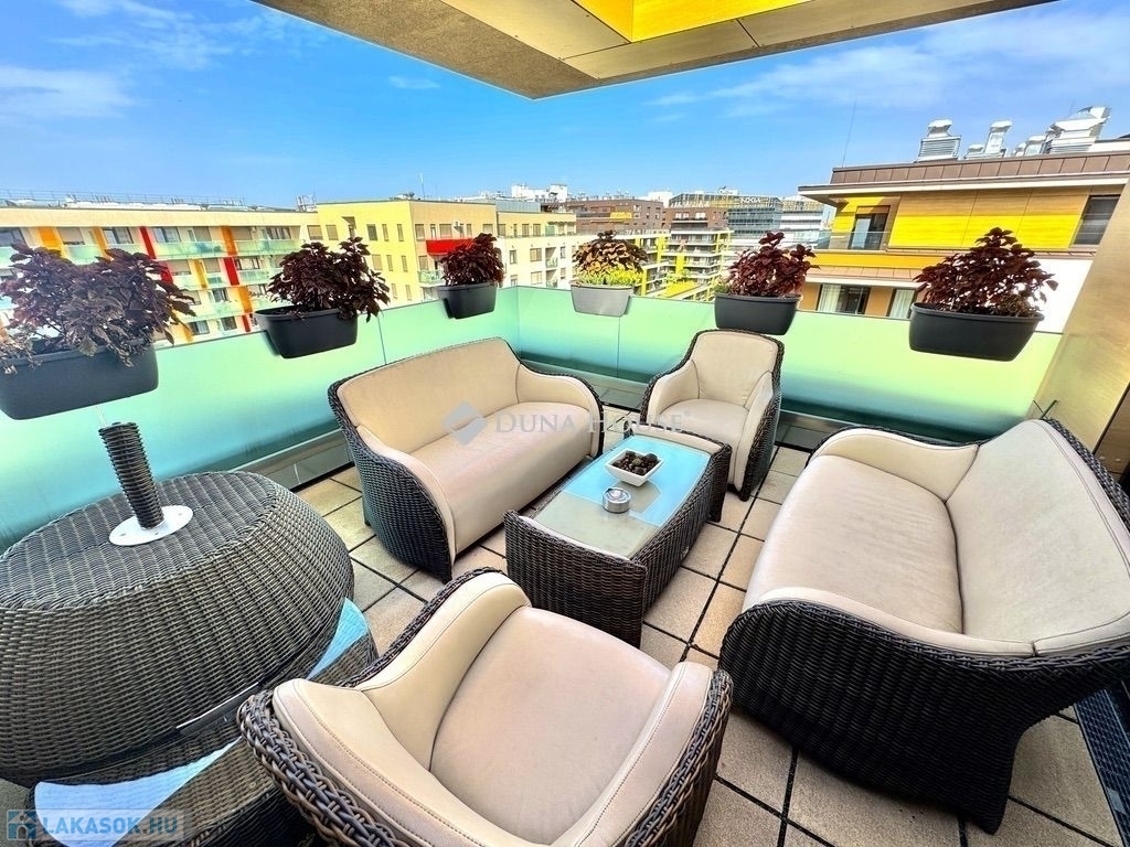 a Corvin Sétány szívében  164 m² luxus, 55 m² panorámás terasszal!Budapest egyik legtrendibb és legdinamikusabban fejlődő városrészében, a VIII. kerület megújult részén, a Corvin Sétányon kínálunk megvételre egy valóban egyedi, exkluzív penthouse lakást.Ez az ingatlan két lakás egybenyitásával jött létre, így összesen 164 m² alapterületen nyújtja a tágas, kényelmes otthon érzetét, kiegészítve egy 55 m²-es, két részre osztott panorámás terasszal.Főbb jellemzők:164 m²  nappali + 4 hálószoba2 fürdőszoba, 2 WC55 m² terasz (42,5 + 12,5 m²) automata öntözőrendszerrel9. emelet, liftes épület legfelső szintjePrémium extrák:Teljes okosotthon rendszer  minden funkció mobilról vezérelhetőKözponti hűtő-fűtés, minden évszakban ideális klímaFelsőkategóriás, gépesített konyha (beépített kávéfőző, konyhamalac)Multiroom hangrendszer  zene bárhol, bármikorAutomata árnyékolók a szobákbanGőzkabinos zuhanyzó a fürdőbenBeépített bútorok és gépek + 3 db TV a vételár részeTeraszbútorok benne az árbanExtra lehetőségek:2 db külön tárolóhelyiség4 db egymás melletti parkolóhelyMiért a Corvin Sétány?Budapest egyik legélhetőbb környéke, pezsgő városi életérzésselÉttermek, kávézók, bárok, bevásárlási lehetőségek, mozi és fitnesz központ pár perc alatt elérhetőKiváló közlekedés (M3 metró, villamosok, buszok)Finanszírozás:A lakás hitellel is megvásárolhatóBankfüggetlen Credipass tanácsadónk segít megtalálni a legjobb ajánlatot!Díjmentes hitelközvetítés és megbízható ügyvéd, jogii háttérEz a penthouse ideális választás lehet nagycsaládosoknak, igényes pároknak, vagy befektetőknek, akik prémium életérzést keresnek a város egyik legjobb lokációjában.További információért vagy megtekintésért keressen bizalommal!_______________________________________________________________________________________________________________Exclusive Penthouse at Corvin Promenade  164 m² luxury with 55 m² terrace!For sale: a unique 164 m² penthouse on the top floor, featuring living room + 4 bedrooms, 2 bathrooms, 2 WC, and 2 spacious terraces (55 m² total).Premium features: smart home system, central heating & cooling, designer kitchen with built-in coffee machine, multiroom audio, automatic blinds, steam shower, terrace with smart irrigation, and outdoor furniture included.Extra options: up to 4 parking spaces and 2 storage units available for purchase.Perfect choice for families, couples, or as an investment in Budapests most dynamic district.Contact us today to arrange a viewing!_______________________________________________________________________________________________________________科尔文步行街豪华顶层公寓  164平方米室内 + 55平方米露台!现房出售:独特的顶层公寓,总面积 164平方米,包含 客厅 + 4间卧室、2间浴室、2个卫生间,以及 2个大露台(共55平方米)。高端配置: 智能家居系统、中央冷暖空调、顶级厨房(内置咖啡机)、全屋音响、自动窗帘、蒸汽淋浴、智能露台灌溉系统,户外家具赠送。可选购:最多4个车位 + 2个储藏间。无论是家庭、品位情侣,还是投资者,这都是布达佩斯最具潜力地段的理想之选。欢迎随时预约看房!