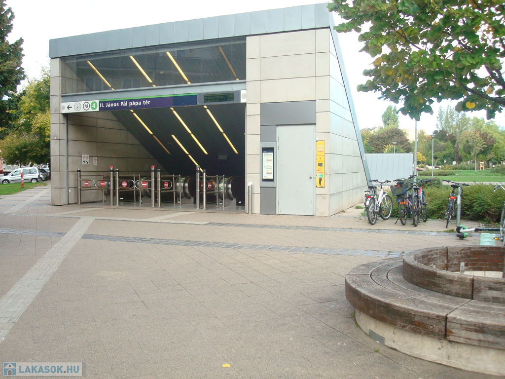 II. János Pál pápa téri 4-es metró megálló 100 méterre. A felújított parkban, kutya sétáltató, futópálya és fitnesz eszközök vannak.