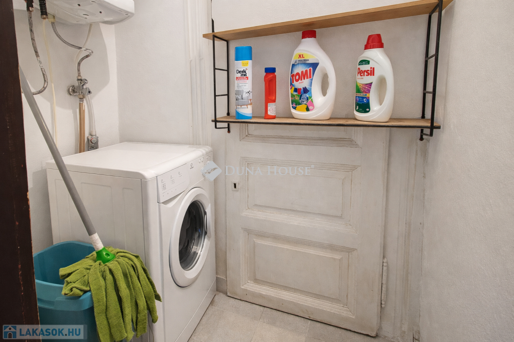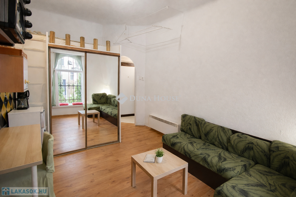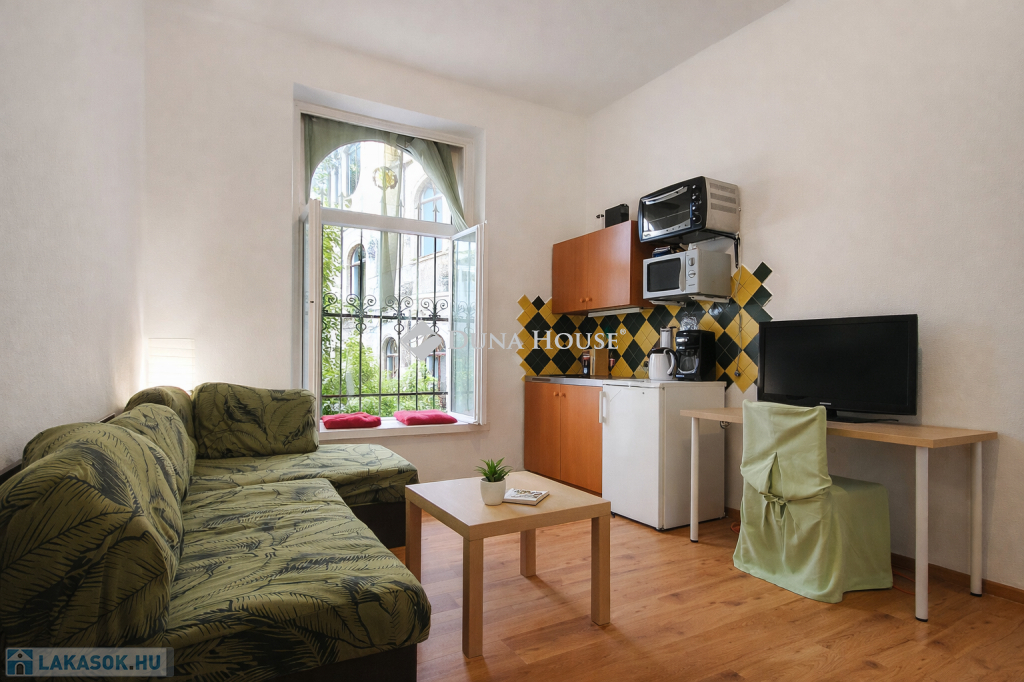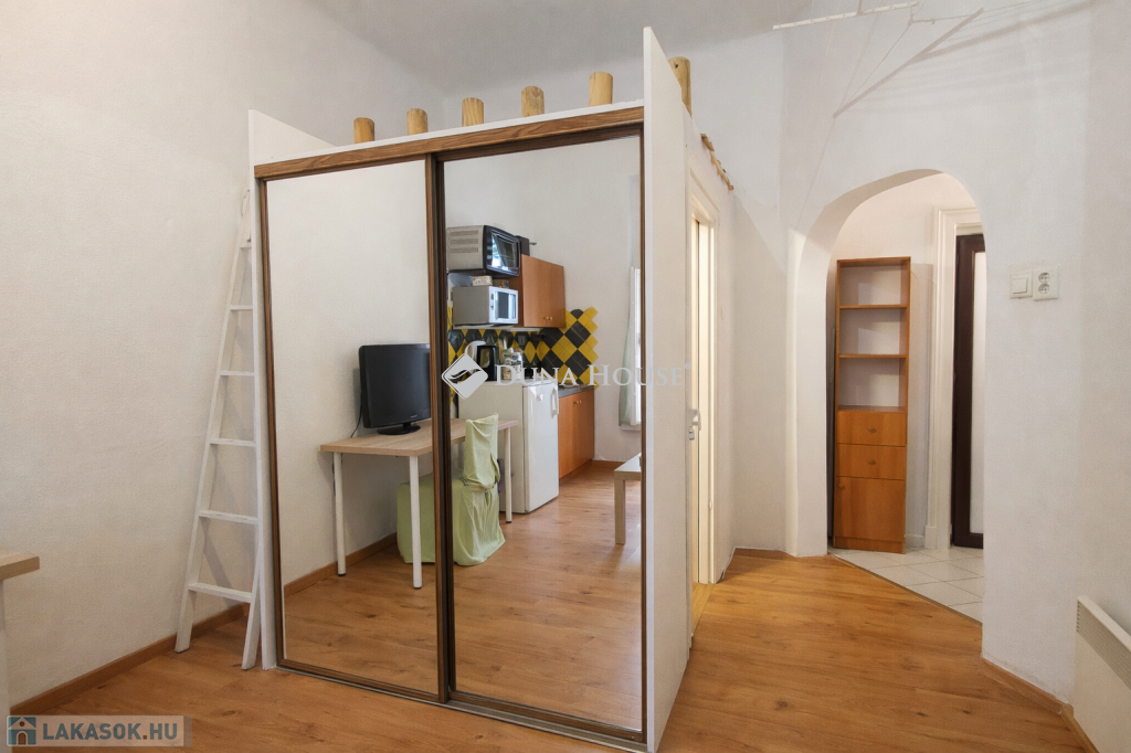 Pesti garzon ősfás kertben (ENG below)Az ingatlan jellemzői:- 25 m² teljes használható lakótér:- 19m² a tulajdoni lapon- 3,5 m² fekvőgaléria- kb. 2 m² lakáshoz tartozó és amellől nyíló háztartási tér- 4 m feletti belmagasság- Újszerű fürdőszoba sarokkáddal- Előretöltős és éjszakai mérő- Programozható fűtésrendszer- Alacsony fenntartás 6555 Ft közös költség korlátlan vízfogyasztássalKiváló elhelyezkedés Budapest belvárosában:- Pár perc sétára a metrómegállóktól (M4, M2) - Csendes, zárt belső parkos környezetA Rákóczi útról az ősfás kertbe érkezve egy felújított, neoromán stílusú, jelenleg kulturális térként működő templom mellett halladunk el. Nagyjából 100 méterrel beljebb egy 2 emeletes épület található, amely az 1800-as években iskolaként üzemelt. A helytörténeti cikkek szerint itt tanult Petőfi Sándor.Az itt lakók Luther utca és a Kiss József felöl is bejuthatnak.Az epületbe lépvén pár lepcsőfok vezet a magasföldszinti egykori parókiába, ami home officenak lett kialakítva.Az társasházban az Airbnb üzemeltetés a társasház által engedélyezett. Az ingatlan saját otthonnak vagy befektetésnek is ideális a belvárosi lokáció és az alacsony fenntartási költség miatt.------------------------------------------------------------------------------------