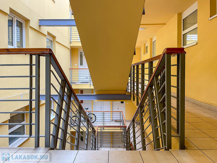 2000-ben épült, lifttel rendelkező társasházban emeleti, utcai nézetű lakás eladó.