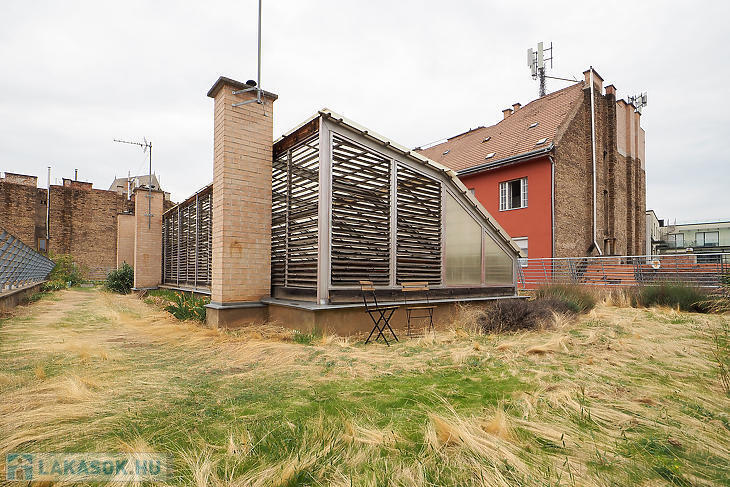 A társasház tetején a lakók kizárólagos használatában lévő tetőterasz található, amely zöldterületet biztosít a belváros szívében.