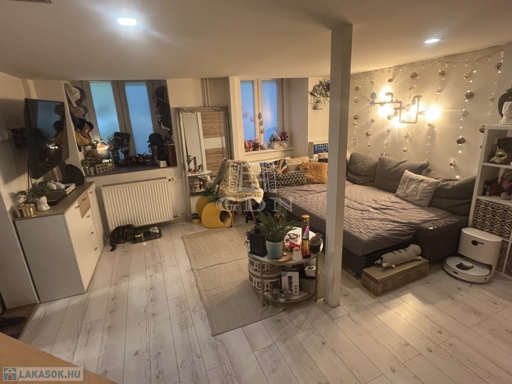 A lakás belső udvarra néz, így a Rákóczi út forgalmából szinte semmi nem szűrődik be. Az alapterület 30 nm, de a nappali felett található teljes állógaléria miatt a hasznos tér 48 nm-re bővül, ami egy sokkal élhetőbb, kényelmesebb otthont biztosít.