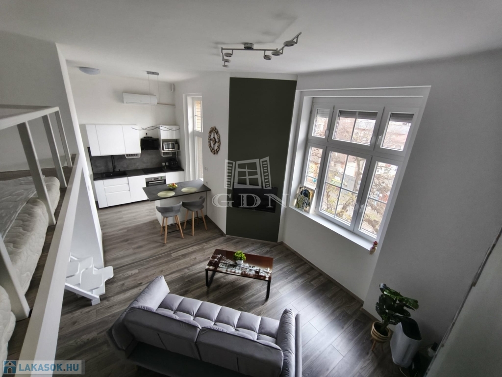 Ebben a különleges környezetben várja új tulajdonosát ez a rendkívül világos, modern garzonlakás, ahol minden részlet a tudatos tervezésről és a kényelemről szól. A nagy belmagasság lehetővé tette a galéria kialakítását, így a tér levegős, mégis intim. A reggeli kávé az erkélyen, a napfényben fürdő nappali, az esti csend – mind hozzájárulnak ahhoz az érzéshez, hogy itt jó élni.
