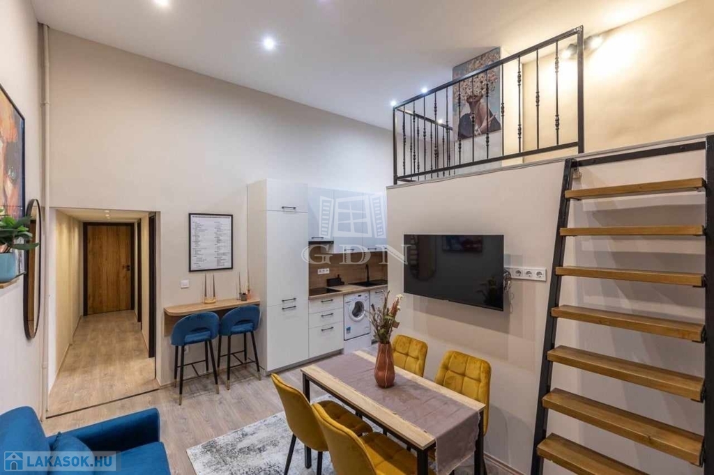 Budapest VIII. kerületében, a Német utcában, hangulatos társasház földszintjén kínálunk eladásra két külön bejáratú, belső kétszintes, teljeskörűen felújított, bútorozott és gépesített lakást.