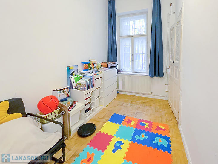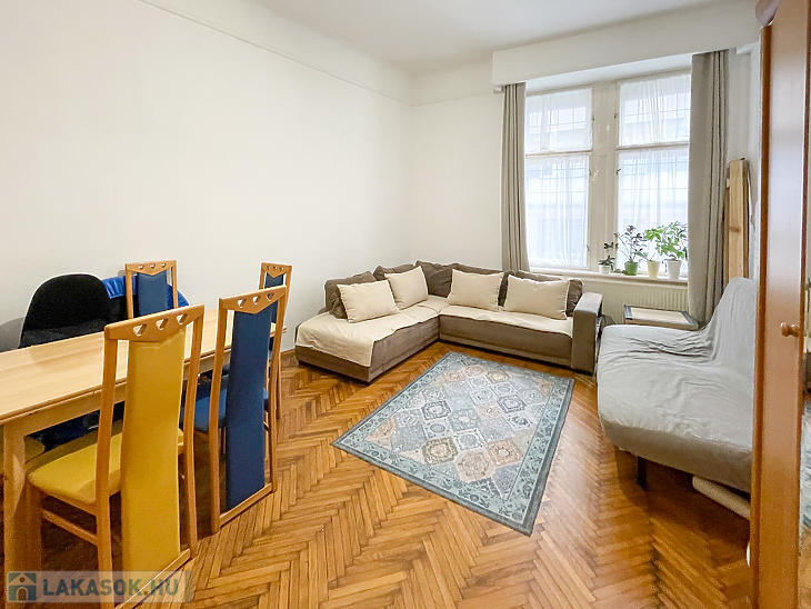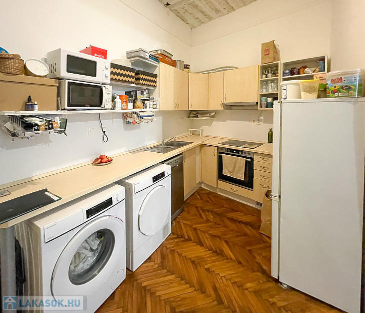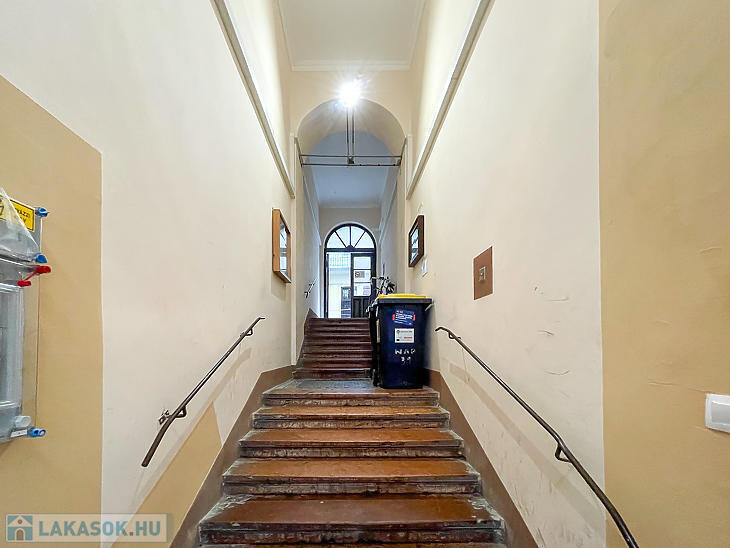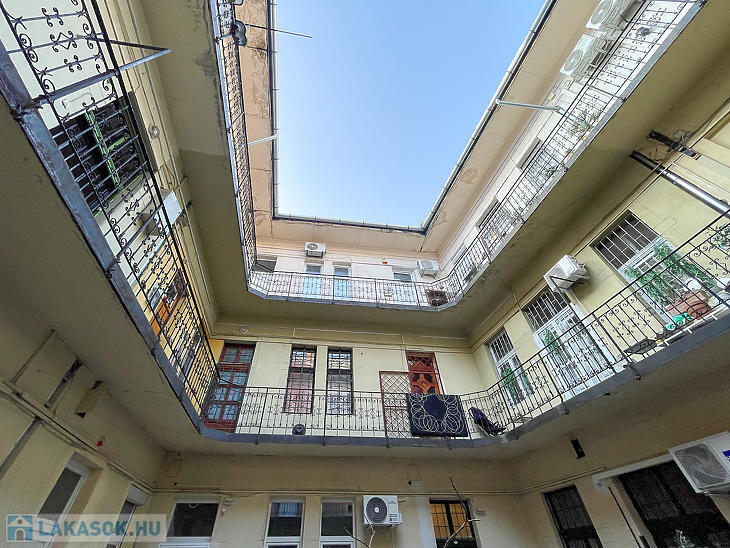 Corvin negyedben első emelet magasságában lévő, de ingatlan-nyilvántartás szerint földszinti, világos lakás eladó.