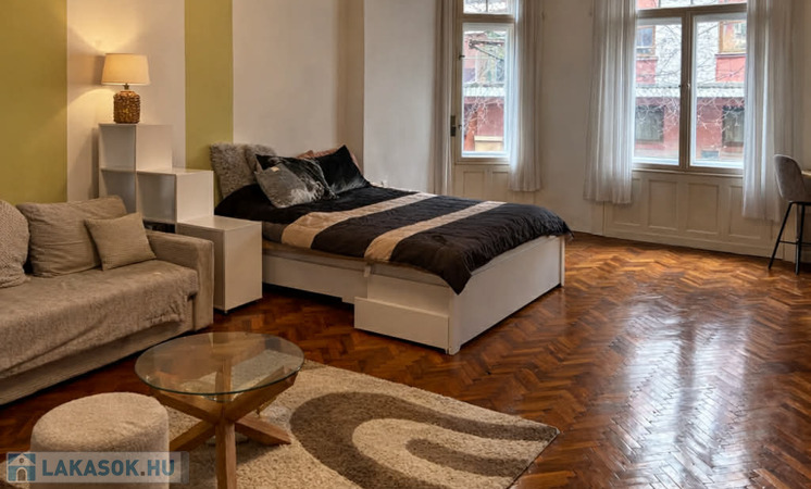 A lakás 1. emeleti, 52 nm, 1 szobás, a Corvin mozi és a Corvin plaza bejáratától, Corvin köztől 100 m-re.