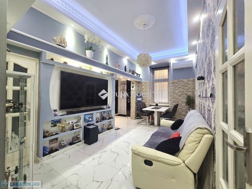 Dobozi utcában azonnal költözhető állapotban!A VIII. kerület frekventált részén, a Dobozi utcában eladó, egy 1. emeleti, 57 m²-es, nappali + 3 hálószobás, minden részletében teljes körűen újragondolt és igényesen felújított téglalakás.Elosztás:-Amerikai konyhás nappali modern, tágas tér, rejtett LED világítással, TV-fallal,-Három hálószoba,-Fürdő + WC egy helyiségben,-Gardróbszoba, -Utcai és udvari nézetű is világos, jól szellőző lakás.A lakás műszakilag és esztétikailag teljeskörűen megújult;-új víz- és villanyvezetékek,-minőségi burkolatok (márványhatású járólap, díszlécezés, rejtett világítás),-energiatakarékos műanyag nyílászárók,-újszerű konyhabútor gépesítve (főzőlap, sütő, páraelszívó, beépített LED világítással),-exkluzív fürdőszoba, modern szaniterekkel és design megoldásokkal,-klímaberendezés,-fűtés: konvektoros, de cirkórendszer is kiépítve, jelenleg melegvíz-ellátást biztosít.A társasház klasszikus téglaépület, belső udvaros, három szintes. A homlokzat és közös terek karbantartást igényelnek, de lakóközössége csendes, és hosszú távra tervezőknek is remek választás.A lakás szinte közvetlen villamoskapcsolattal rendelkezik a belváros, a Keleti pályaudvar, a Nagykörút, illetve Kőbánya és Zugló irányába is. A megállók két percen belül gyalogosan elérhetők, és nincs szükség hosszú sétákra vagy átszállásokra a napi közlekedéshez.- pár perc sétára található Lidl, Spar, Tesco Expressz, zöldségesek, pékségek, DM, Rossmann - közelben óvodák, általános iskolák, sőt több egyetem (SE, Pázmány, ELTE) is gyorsan elérhető villamossal befektetés szempontjából is vonzó.Ez a lakás tökéletes választás azoknak, akik nem szeretnének felújítással bajlódni, hanem azonnal egy szép, modern otthonba költöznének akár családnak, akár befektetésnek is kiváló.Ha a hirdetés felkeltette érdeklődését.