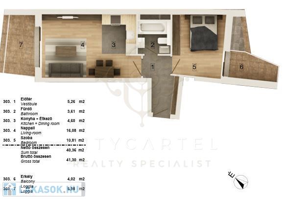 A liftes társasház 3. emeletén található, 45,36 nm-es, (40,36 nm lakás 10 nm terasszal) 2 szobás lakás korszerű hőszivattyús fűtés–hűtéssel és teljes körű okosotthon-rendszerrel felszerelve várja új tulajdonosát. A burkolatok még választhatók, így a leendő tulajdonos saját ízlésére szabhatja az ingatlant.