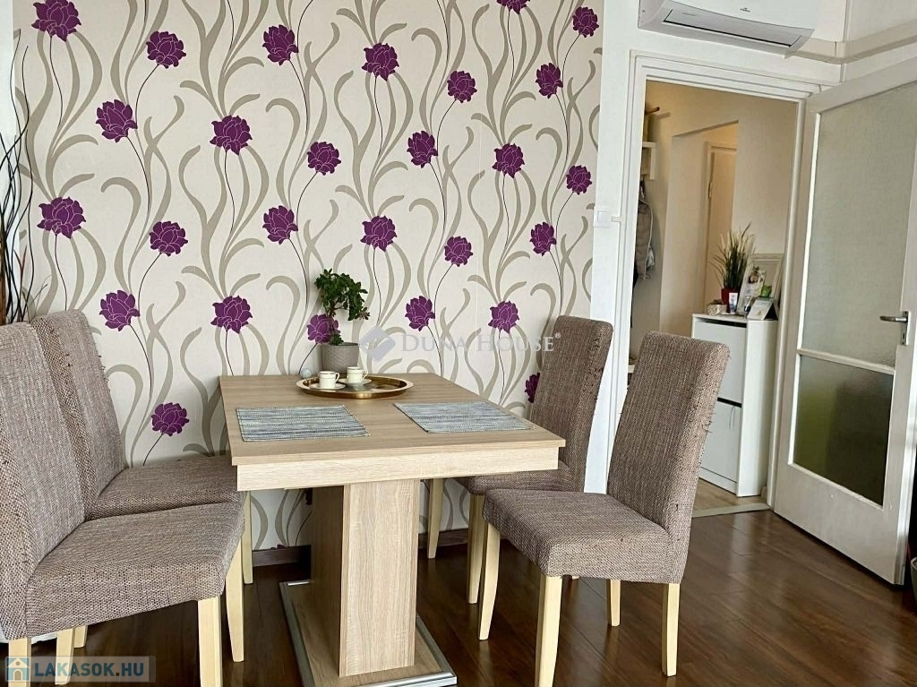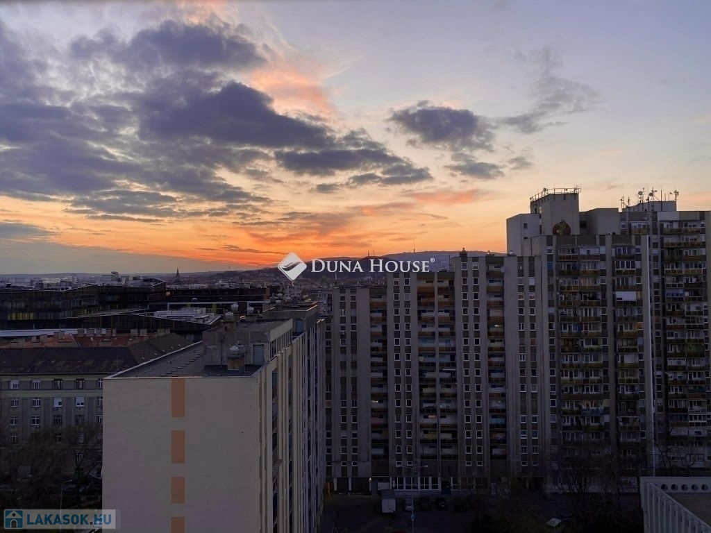 örök kilátással a Gellért-hegyre!Budapest VIII. kerületében, a Corvin negyed közvetlen szomszédságában kínálunk megvételre egy 13. emeleti, 54 m²-es, 2 szobás, 8 m²-es loggiával rendelkező, örökpanorámás, rendkívül világos és jó állapotú lakást.A lakás egyik legnagyobb értéke a lélegzetelállító panoráma a Gellért-hegyre, amely ebben a városrészben igazi ritkaságnak számít.Társasház:Az épület az elmúlt években folyamatos korszerűsítésen és karbantartáson esett át:- 3 db felújított lift- Rendezett, tiszta lépcsőház- Jó lakóközösség, stabil működés A lakás elrendezése (54 m² + 8,19 m² loggia)Praktikus, jól átgondolt alaprajz:- Előszoba: 4,96 m²- Tágas, ablakos konyha: 7,82 m²- Nappali: 18 m² innen nyílik a 8,19 m²-es erkély- Hálószoba: 12 m²- Fürdőszoba: 3,37 m²- Külön WC: 0,88 m²- Folyosó gardróbbal: 3 m²A szobák déli fekvésűek, a konyha nyugati tájolású, így a lakás egész nap világos, napfényes. Műszaki állapot- A lakás 4-5 évvel ezelőtt, három ütemben teljes körű felújításon esett át:- Nyílászárók cseréje- Villanyvezetékek cseréje- Teljes gépesítés (mosógép, mosogatógép, klíma)A lakás bútorozott, a berendezés a vételár részét képezi így akár azonnal költözhető vagy kiadható. Fenntartási költségek:- Közös költség: 13.000 Ft / hó- Fűtés: távfűtés- Teljes rezsi: fogyasztás alapján kb. 40.000 Ft / hóKözlekedésKiváló infrastruktúra és közlekedés:- 72-es és 83-as troli- 9-es busz- 4/6-os villamos- 3-as metró Corvin-negyed és Klinikák megállóKörnyék:- A Corvin negyed közelsége miatt minden néhány percen belül elérhető:- Éttermek, kávézók, üzletek, szolgáltatások közel 100 egység- Egyetemek: Semmelweis Egyetem, Pázmány Péter Katolikus Egyetem, Nemzeti Közszolgálati Egyetem- A megújult Orczy-kert kiváló kikapcsolódási lehetőséggelEz a lakás ideális választás saját otthonnak vagy befektetésnek egyaránt panorámája, elhelyezkedése és állapota miatt kiemelkedő lehetőség a piacon.