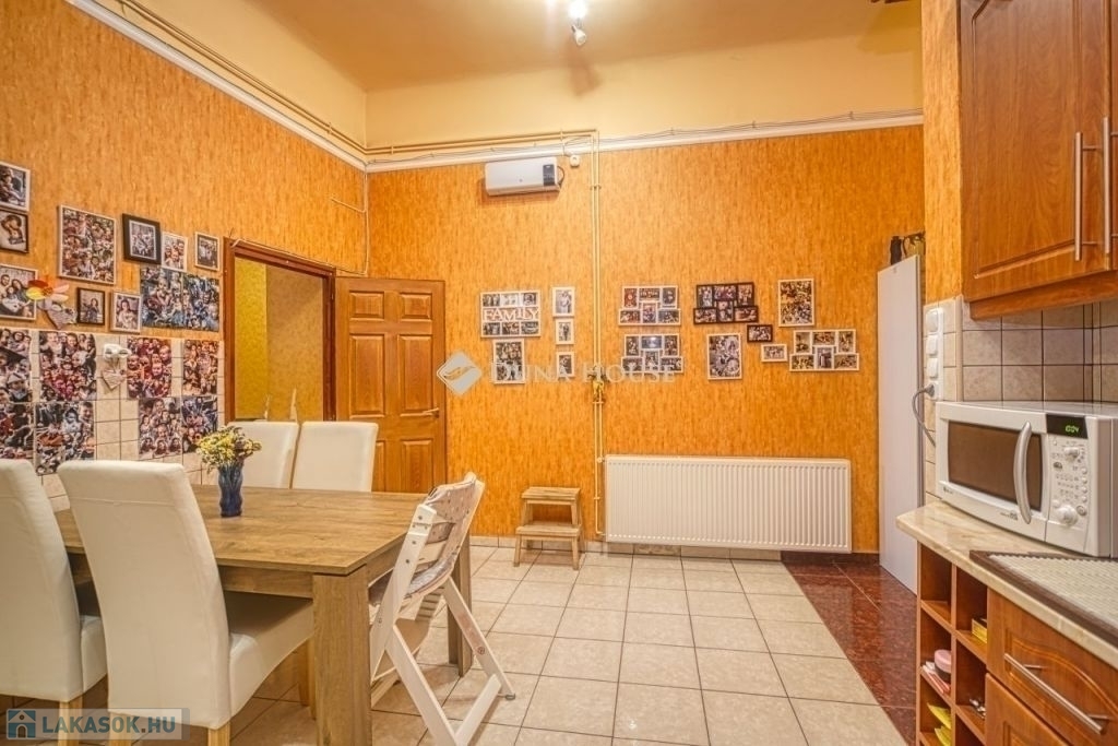 egy harmadik emeleti, 86 nm-es tulajdon lap szerint 2 szobás, az átalakítást követően 4 db ½ szoba került kialakításra, és egy teljes értékű szoba.Az ingatlan jó állapotú tisztasági festéssel költözhető.Kiemelném a társasházban nincs lift.Az ingatlanba belépve az előszobából balra nyílik egy lakószoba, a tágas közlekedőből nyílik a kamra, a fürdőszoba, a wc, a jelenlegi tulajdonos átalakításának köszönhetően a 26,7 m2-es amerikai konyha+nappali étkező a családi élet színtere lehet, ezenkívül, hálószoba, gyerekszoba, és egy lakószoba került kialakításra.A családi otthon az alábbi korszerűsítésen esett át:- villanyvezeték hálózatot korszerűsítették,- az ablakok korszerű műanyag nyílászárók,- 2022 ben kondenzációs kazán került beépítésre,- kiegészítő fűtésként elektromos panelek állnak rendelkezésre,- a burkolatok cseréje megtörtént,- a padlózatot újra betonozták.A közös költség 40,595, Ft, mely tartalmazza a takarítást a szemétszállítást, és a felújítási alapot is.A gáz, a víz és a villany fogyasztás egyedi mérés alapján történik.A vételárrészét képezi a beépített, gépesített konyhabútor és az elektromos fűtőpanelek.Autóval a parkolás az utcán lehetséges, a lakóknak egyszeri díjat kell fizeni az önkormányzatnak.Ajánlom befektetőknek, családosoknak, de felsőoktatásban tanulók számára is kiváló választás, mivel az egyetemek könnyedén és gyorsan megközelíthetőek.A lakás könnyedén ketté osztható, a kiadhatósága garantált.Tömegközlekedés szempontjából is kiemelten jó helyen van a lakás: A Keleti Pályaudvar 10 perces sétával elérhető, több villamos megálló is van a lakás közelében: 28-as, 23-as, 24-es és a 37/A villamos vonal elérhető.A környék remek éjjel-nappali közlekedéssel és szuper infrastruktúrával rendelkezik.NÁLUNK VEVŐINKNEK MINDEN SZOLGÁLTATÁS DÍJMENTES!Megtalálta a megfelelő ingatlant, ám megvásárlásához hitelre van szüksége?DÍJMENTES Hitel Centrumunk banksemleges tanácsadással, és teljes körű ügyintézéssel áll az Ön szolgálatára!