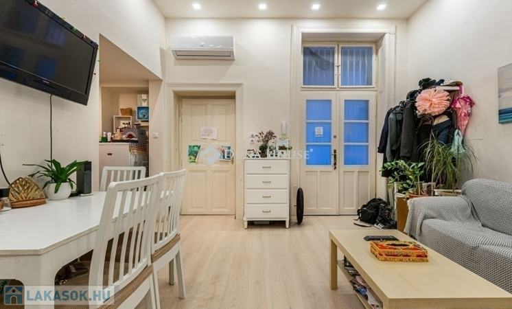 Megvételre kínálom ezt a 77 nm alapterületű, 2 szobás - a Rákóczi úttól kb 50 méterre található, az Erzsébet körúthoz közeli - 2019-ben teljeskörűen felújított 2. emeleti lakást.Az ingatlanba belépve szemben találjuk a gépesített konyhát (mosógép, hűtő, elektromos sütő, főzőlap), a folyosóról jobbra található egy különnyíló, galériázott( masszív vasgerenda, faburkolat) szoba (közel 14 nm), amely a csendes udvarra néz. Tovább haladva balra található a fürdő, amely zuhanyzóval van ellátva, majd tovább haladva a világos, csendes, nagyméretű ( 33nm) nappaliba érünk.Az ingatlan per és tehermentes, 1/1 tulajdon, rövid időn belül költözhető.Az ingatlan fűtűs/hűtéséről 3 db inverteres klíma gondoskodik.Közös költség 16.000.- Ft.A házat folyamatosan karbantartják, a lépcsőházat nemrégiben festették ki.Tömegközlekedés szempontjából is kiváló, a 4-es és a 2-es metró kb 2 percre található, a 7-es,99-es busz valamint a 4-es és 6-os villamos szintén pár perc sétatávolságra van.Az utcán mindig található parkolóhely.Megtekintéssel vagy egyéb kérdéssel kapcsolatban állok rendelkezésére a hét bármely napján.