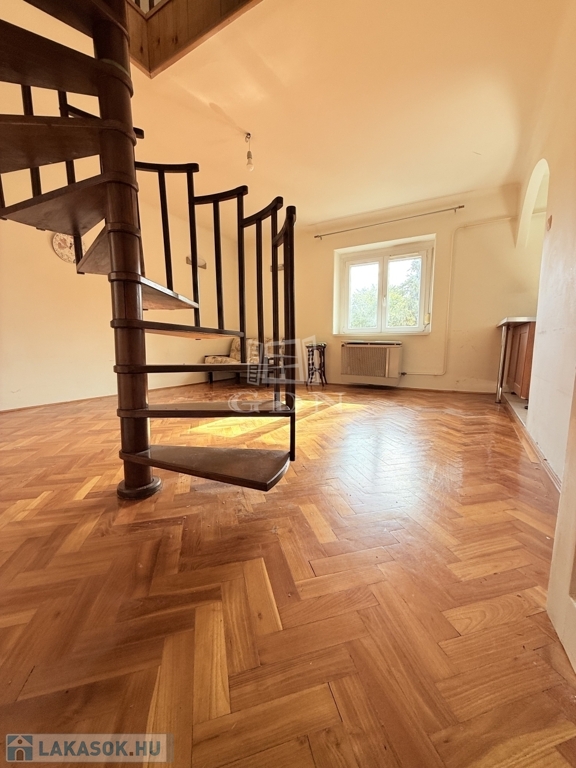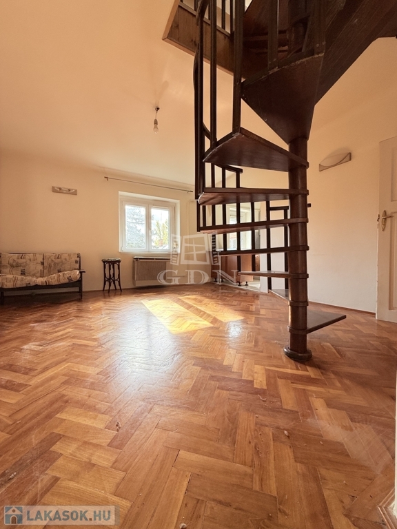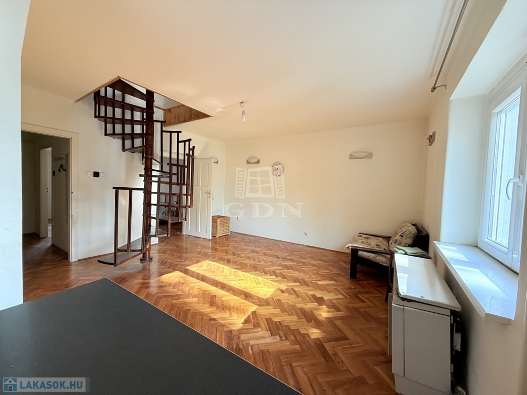 Titkos favorit a zavaros ingatlanpiac sokaságában, Zugló és Józsefváros határán a Puskás aréna mellett kiemelkedő infrastruktúrával. Ha szeretne központi elhelyezkedéssel egy kiváló, lakható, de akár könnyen bérbeadható társasházi lakást megfizethető áron akkor érdemes ezt az ingatlant személyesen is felfedeznie. Csupán 4 megállónyira (7perc metró) a Deák Ferenc tértől, Stadionok metró megállótól séta távolságban, madárcsicsergős, zöld és békés környezetben Stróbl Alajos utcában található az ingatlan. Elkerített zárt kertben áll az a 6 lakásos lépcsőház melyben a legfelső, második emeleten helyezkedik el ez a különleges, sallangoktól mentes duplex lakás. Az összes ablaka a csendes belső kert irányába néz és napkeltétől napnyugtáig világos, fényárban úszik. Az épület rendezett, a tetőt 10 éve újították fel új cserépfedést kapott, egyidejűleg velux ablakok kerültek beépítésre a felső szinten és az alsó szinten is műanyag ablakok váltották a fa nyílászárókat. Az alsó szinten az előszobából nyílik az összes helyiség, egy tágas háló, mellette egy praktikus kamra /dolgozó ablakkat és a fürő illetve a külön wc kapott helyet a konyha nappali mellett. A konyha – étkező és nappali jelenleg egy egység, de az ablakok elhelyezkedésének köszönhetően akár újra külön választhatóak. A nappaliból vezet fel egy csigalépcső, ahol további két hálószoba (ablakokkal)található, igény esetén a felső szint is alkalmas egy zuhanyzó és mosdó elhelyezésére. Az alső rész 47m2 a felső pedig bruttó 56m2 , a földhivatali nyilvántartás szerint 77m2, az értékesítési alapterületkén a 190cm alatti területet a szokásos 50%-kal került feltüntetésre. Fűtését tekintve jelenleg gázkonvektor, ami akár egy mika kazánra is cserélhető. Igény esetén a fűtés hőszivattyús klímákkal is megoldható opcionálisan H tarifával párosítva. A lakást immár 6 évig bérlő lakta, azonnal birtokba vehető az ingatlan. A környéken minden megtalálható, ami városi mindennapok kényelméhez elengedhetetlenek. Könnyen parkolhatóak a környező utcák, kiváló tömegközlekedési lehetőségek állnak rendelkezésre. Az aréna pláza csupán 900m távolságra. Tökéletes lehet akár nagyobb családok részére, de bérbeadás is korrekt hozamot hoz a stabil ingatlan ár növekedés mellett így magas inflációs környezetben értékálló befektetés.